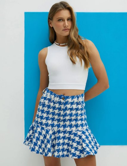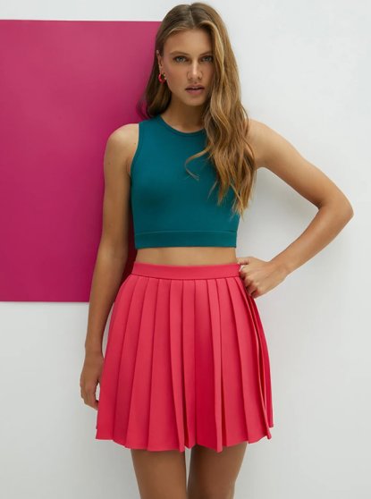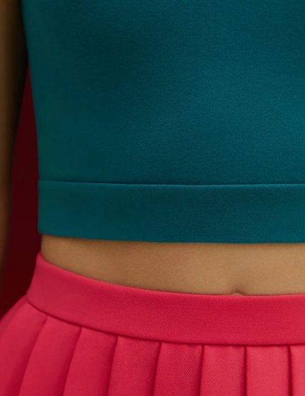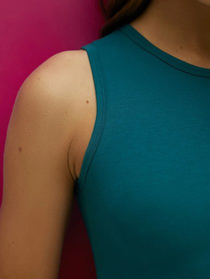 Оптовая продажа. Кроп-топ женский из хлопка, укороченный, прилегающего силуэта, с круглым вырезом горловины, на широких бретелях.