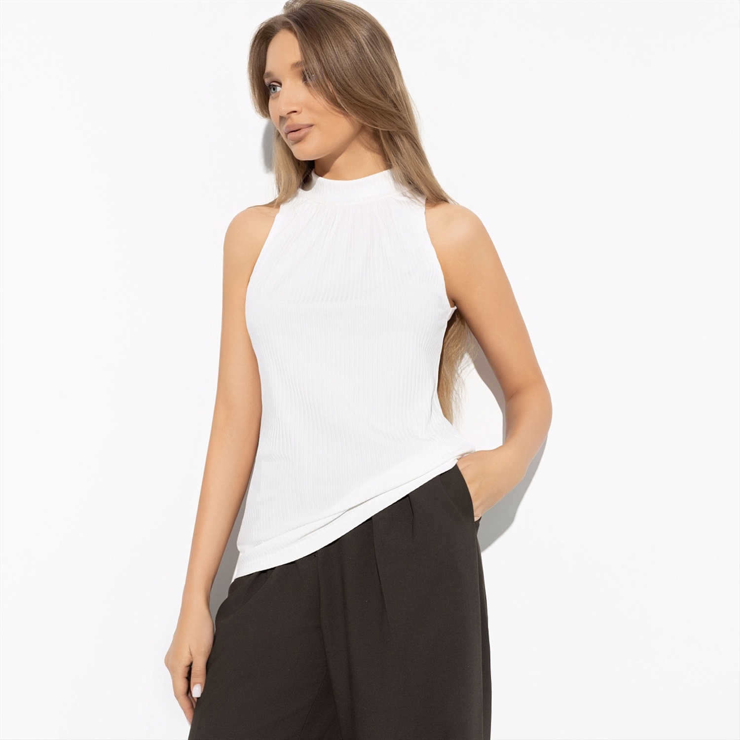 ТН ВЭД: 6106200000; Состав: Трикотаж «лапша» (65% п/э, 30% вискоза, 5% спандекс); Плотность ткани: Средняя; Тип ткани: Трикотаж; Вид застежки: Нет; Карманы: Нет; Основной цвет ткани: Молочный; Отрезная талия: Нет; Подклад: Нет; Резинка по талии: Нет; Рисунок/раппорт: Нет, все изделия идентичны; Сезон: Круглогодичный