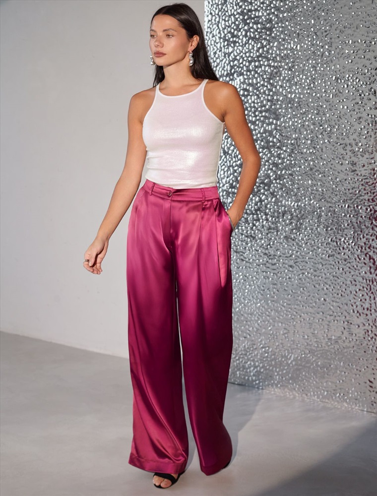 Натуральный дышащий материал обеспечивает комфортный микроклимат на протяжении всего дня, не вызывая дискомфорта даже при длительном ношении. Износостойкое покрытие сохраняет блеск и привлекательность майки несмотря на частое использование. Топ прекрасно сочетается с деловым костюмом или аксессуарами, позволяя создавать как строгие, так и вечерние образы.