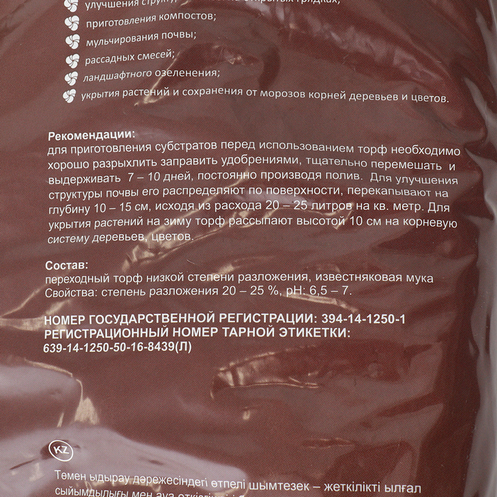 Производитель: Азбука Роста; Габариты: 75 x 45 x 9; Доставка: Платная; Страна: Россия; В боксе: 1 шт; Состав: См. на упаковке; Материалы: см. на упаковке; Фасовка: по 1 шт; Индивидуальная упаковка: Пакет; Сертификат: Не подлежит сертификации; Область применения: Для всех видов растений, культур; Форма выпуска: Сухое; Вес/Объём: 50 л; Кислотность: Нейтральные (6-7 pH) Переходный торф низкой степени разложения - продукт органического происхождения, обладающий достаточной влагоемкостью и воздухо-проницаемостью. Предназначен для приготовления субстратов; улучшения грунта в закрытых теплицах; улучшения структуры почвы на открытых грядках; приготовления компостов; мульчирования почвы; рассадных смесей; ландшафтного озеленения; укрытия растений и сохранения от морозов корней деревьев и цветов. Для приготовления субстратов перед использованием торф необходимо хорошо разрыхлить заправить удобрениями, тщательно перемешать и выдерживать 7-10 дней, постоянно производя полив. Для улучшения структуры почвы его распределяют по поверхности, перекапывают на глубину 10-15 см, исходя из расхода 20-25 литров на кв.метр. Для укрытия растений на зиму торф рассыпают высотой 10 см на корневую систему деревьев, цветов. Состав : Переходный торф низкой степени разложения, известняковая мука.