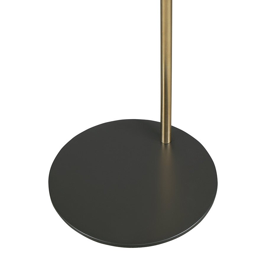 Материал: железо, латунь. Размеры: 24х24х142 см. Цвет: черный/золотистый. Тип цоколя: Е27. Максимальная мощность лампы: 5 Вт. Степень пылевлагозащиты: IP20. Переключатель: ножной. Длина провода: 3,5 м. Лампы в комплекте: нет.