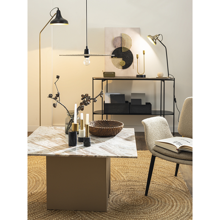 Коллекция: Enkel Название товара: Торшер Enkel Sand, 165 см, золотистый/черный Артикул: BB0000438 Материал: железо, латунь Цвет: черный/золотистый Вес: 3000 гр Размеры в упаковке (ШхГхВ): 38 х 68 х 180 см Размеры без упаковки (ШхГхВ): 58 х 28 х 165 см Торшер Enkel Sand сделает интерьер уютным и элегантным. Благодаря минималистичному дизайну и стильному цветовому решению этот напольный светильник станет отличным выбором для создания световых акцентов в жилом и коммерческом пространстве. Особенности и преимущества: - Функциональные элементы из прочных, износостойких материалов – железа и латуни. - Возможность регулировки угла освещения благодаря подвижному плафону. - Универсальный дизайн, который подходит практически к любому оформлению. - Устойчивое основание, исключающее случайное падение. - Оптимальная высота для качественной подсветки необходимой зоны. - Распространенный тип цоколя Е27, который подходит для большинства ламп. Материал: железо, латунь. Высота: 165 см. Цвет: золотистый/черный. Тип цоколя: Е27. Максимальная мощность лампы: 5 Вт. Степень пылевлагозащиты: IP20. Переключатель: ножной. Длина провода: 3,5 м. Лампы в комплекте: нет. Комментарии к товару