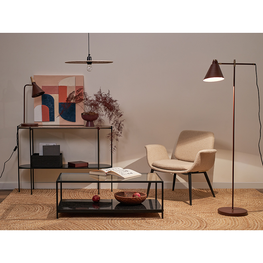 Название товара: Торшер Rifl, 146 см, сливовый Артикул: BB0000440 Материал: железо, латунь Цвет: вишневый Вес: 4940 гр Размеры в упаковке (ШхГхВ): 160 х 60 х 40 см Размеры без упаковки (ШхГхВ): 48 х 28 х 146 см Торшер Rifl – простой способ сделать любое пространство более уютным и функциональным. Дизайн светильника прекрасно гармонирует с популярными интерьерными стилями: эко, фьюжн, прованс, сканди, лофт и другими. Модель отлично смотрится в гостиной, спальне, кабинете, прихожей. Особенности и преимущества: - Сочетание элементов из железа и латуни делает конструкцию надежной и долговечной. - Непрозрачный плафон с подвижным соединением создает направленный световой поток для качественной подсветки необходимой зоны. - Небольшой вес позволяет без труда перемещать торшер, а длинный провод дает возможность установки в любом уголке комнаты. - Распространенный тип цоколя Е27 подходит для большинства ламп, включая энергосберегающие источники света. Материал: железо, латунь. Высота: 146 см. Цвет: сливовый. Тип цоколя: Е27. Максимальная мощность лампы: 5 Вт. Степень пылевлагозащиты: IP20. Переключатель: ножной. Длина провода: 3,5 м. Лампы в комплекте: нет. Комментарии к товару