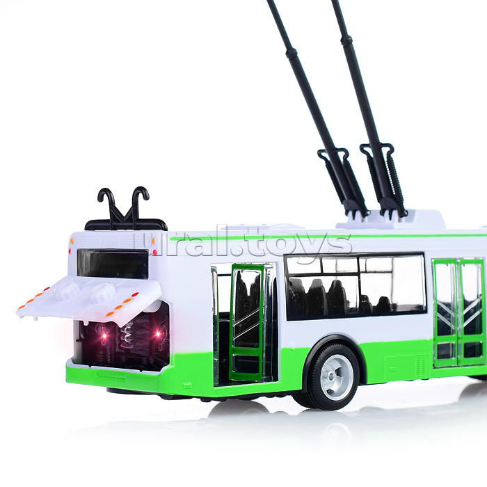 • Размеры: 30х7 см. • Инерционный механизм. • Световые и звуковые эффекты. • Для работы нужны 3 батарейки "LR44" (входят в комплект). • Открываются и закрываются двери. • Материал: пластик. • Соответствует требованиям безопасности и стандартам качества продукции. • Для детей от 3-х лет.
