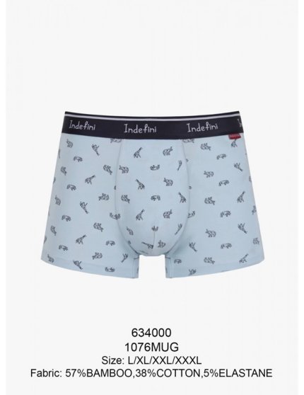 Оптовая продажа. Трусы - боксеры (шорты) мужские голубого цвета с принтом - мелкие фигурки животных, эластичная пришивная резинка с фирменной надписью "Indefini".