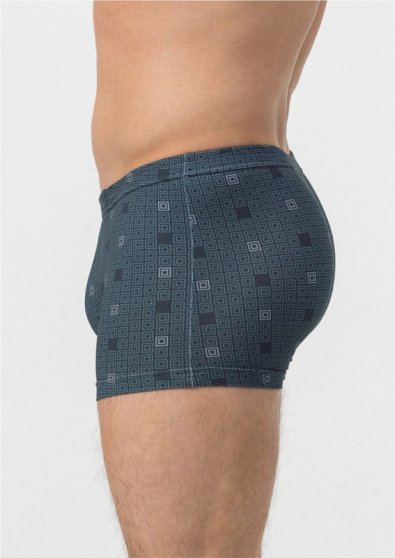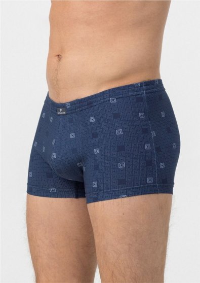 Оптовая продажа. Трусы шорты мужские из трикотажного полотна кулирная гладь, гребенная пряжа с добавлением лайкры, с геометрическим рисунком, средней линией талии, прилегающего силуэта, профилированным гульфиком, повторяющим изгибы тела, пояс на удобной закрытой резинке. Модель полностью закрывает ягодицы и немного опускается на бедра, не ограничивает движения и обеспечивает комфорт в течении всего дня. Подходят как для ежедневного ношения, так и для занятий спортом. Рекомендуется бережная стирка при температуре не выше 30 градусов.