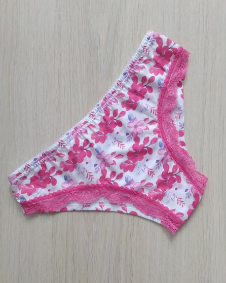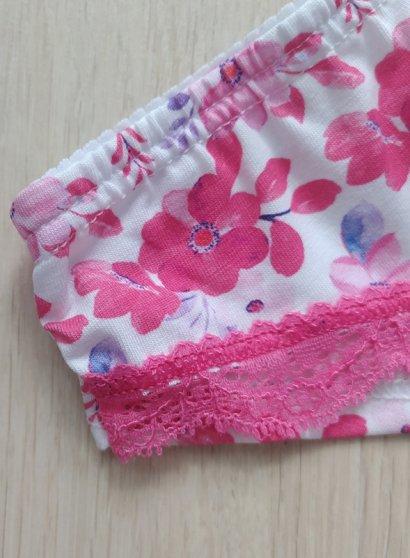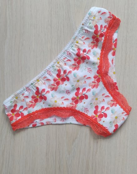 Оптовая продажа. Трусы бразилиана женские из натурального хлопка, со средней линией талии, цветочным рисунком, х/б ластовицей. Модель дополнена декоративным кружевом спереди.
