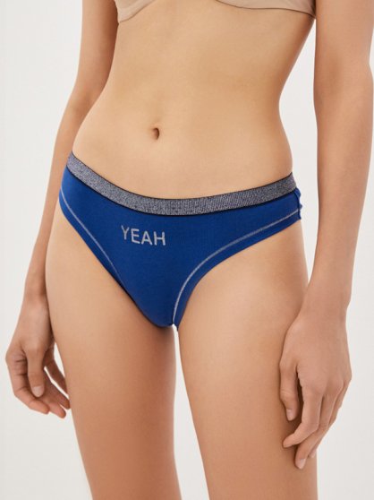 Производитель: Rosso Porpora Оптовая продажа. Бразильяна женские с отстрочкой из люрекса по ножке, эластичная резинка по поясу из люрекса, на передней детали надпись. Состав: Лайкра: 7% Хлопок: 93%