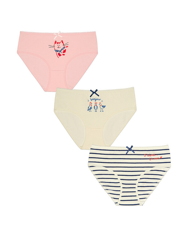 Состав: низ: 93%хлопок 7%эластан, низ2: 93%хлопок 7%эластан, низ:3 93%хлопок 7%эластан Хлопковые трусы слипы Pelican – идеальный выбор нижнего белья для девочек и подростков! Наши трусы выполнены из натурального хлопка, мягкого и приятного на ощупь трикотажа с небольшим добавлением эластана для комфортной носки. Это натуральный дышащий материал, поэтому ваш ребенок будет чувствовать себя максимально комфортно. Комплект трусов подходит как для малышей, так и для подростков. Трикотажные трусы слипы средней посадки - незаменимый элемент детского гардероба! Эти трусики станут отличным выбором для ежедневной носки, сочетая в себе комфорт, функциональность и стильный дизайн. Благодаря удобному крою, они идеально подходят для активных девочек и подростков, предлагая непревзойденный комфорт в течение всего дня. Комплект трусов для девочек легко стирается и сохраняет свою форму и цвет даже после многократных стирок. Хлопковые трусы слипы Pelican - это идеальный выбор для тех, кто ценит комфорт и качество. Перевод принта: "мне нравится... море", "здравствуйте". Не забывайте о правильном уходе за изделием: стирайте при температуре не выше 30 °C, выворачивая наизнанку, чтобы сохранить цвет и качество ткани. Обратите внимание на таблицу размеров, чтобы выбрать идеальный комплект для вашего ребёнка. Учтите, что цвет товара на экране может немного отличаться от реального. Комментарии к товару