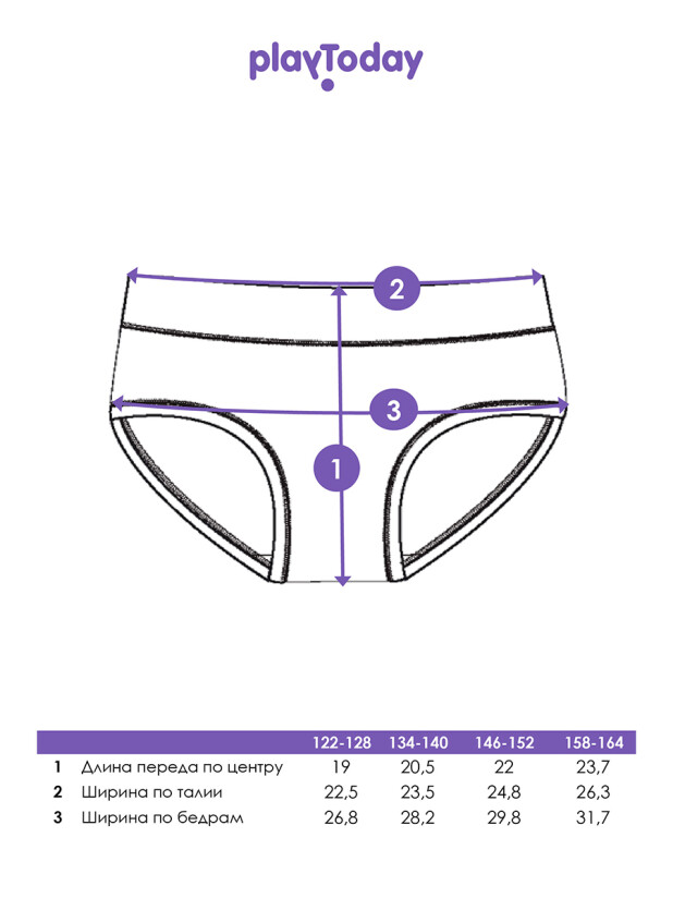 Выбирайте нижнее бельё по размеру — правильная посадка гарантирует комфорт. Сочетайте трусики с мягкими хлопковыми майками PlayToday, чтобы создать полноценный комплект белья.