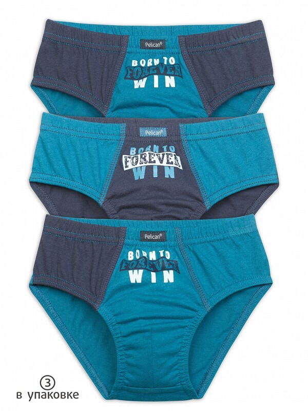 Трусы слипы для мальчиков. В комплекте 3 изделия. Контрастные вставки из основной ткани в боковых частях изделий. Декоративная обработка в области гульфика. Прочный принт. Перевод Рожден всегда побеждать.