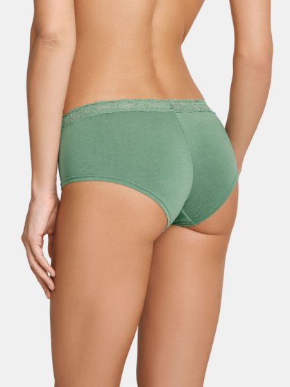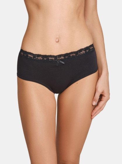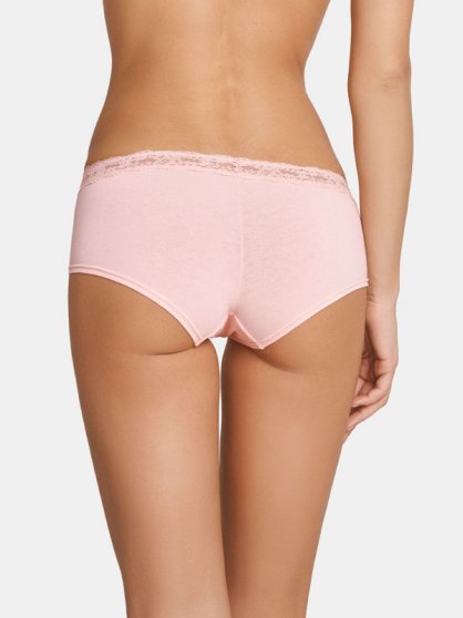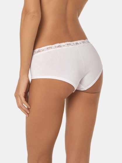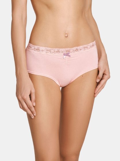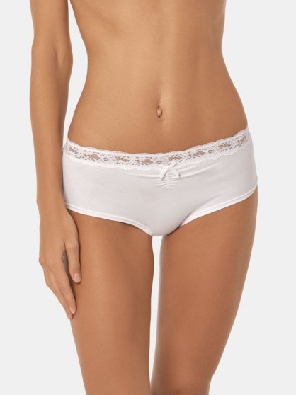 Оптовая продажа. Трусики - шорты женские из мягкого хлопкового полотна с кружевной вставкой по всему поясу, декоративной драпировкой и атласным бантиком на передней детали.