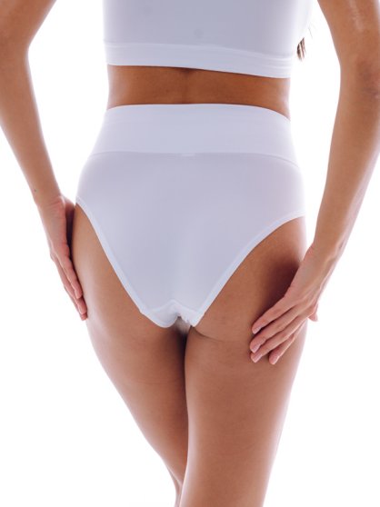 Оптовая продажа. Трусы слипы женские из полиамидного полотна, с завышенной линией талии, двойным поясом с легкой коррекцией, бесшовные, с х/б ластовицей.