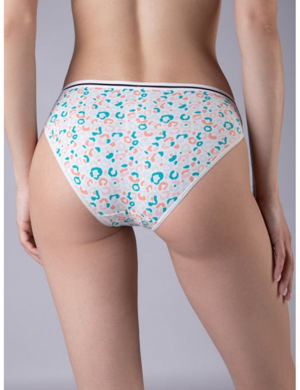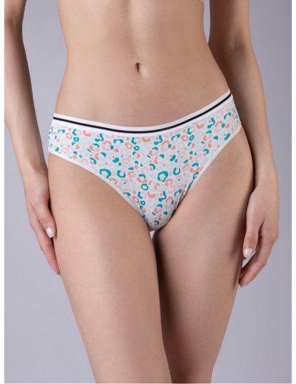 Оптовая продажа. Трусики слипы женские из натурального хлопка с добавлением эластана, повышающий прочность и качество одежды, создавая идеальное облегание фигуры. Имеют среднюю посадку, мягкую и эластичную резинку по талии, удерживающие трусы во время носки. Модель выполнена в цвете мультиколор с анималистичным рисунком по всему полотну, без декоративных элементов. Гигиеничная хлопковая ластовица позволяет избежать трения и раздражения кожи. Удобная и комфортная модель для повседневного белья. Рекомендуется бережная стирка при 30С.