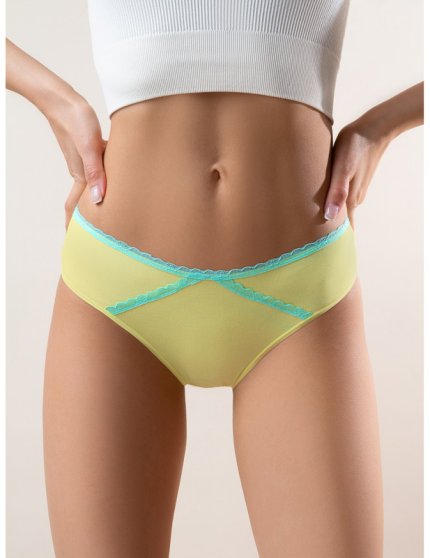 Производитель: Indefini Оптовая продажа. Трусики слипы женские желтого цвета, из высококачественного мягкого хлопка с добавлением эластана, повышающий прочность и качество одежды, создавая идеальное облегание фигуры. Имеют среднюю посадку, мягкую эластичную резинку по талии, удерживающая трусы во время носки, не сдавливая и не оставляя следов на коже. Модель обрамлена изящным контрастным кружевом. Гигиеничная хлопковая ластовица позволяет избежать трения и раздражения кожи. Тактильно приятные на ощупь подходят даже для самой чувствительной кожи. Комфортная модель повседневного белья. Состав: Хлопок: 95% Эластан: 5%