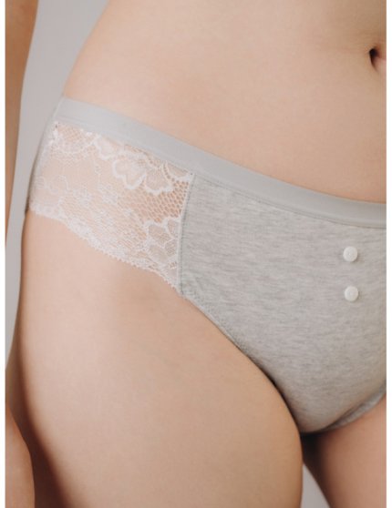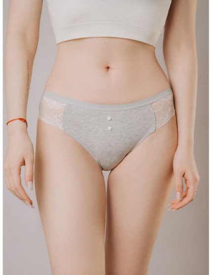 Оптовая продажа. Трусики слипы женские серого цвета с кружевными вставками, из высококачественного мягкого хлопка с добавлением эластана, повышающий прочность и качество одежды, создавая идеальное облегание фигуры. Имеют среднюю посадку, мягкую эластичную резинку по талии, удерживающая трусы во время носки, не сдавливая и не оставляя следов на коже. Гигиеничная хлопковая ластовица позволяет избежать трения и раздражения кожи. Украшением модели служат пуговки. Тактильно приятные на ощупь подходят даже для самой чувствительной кожи.