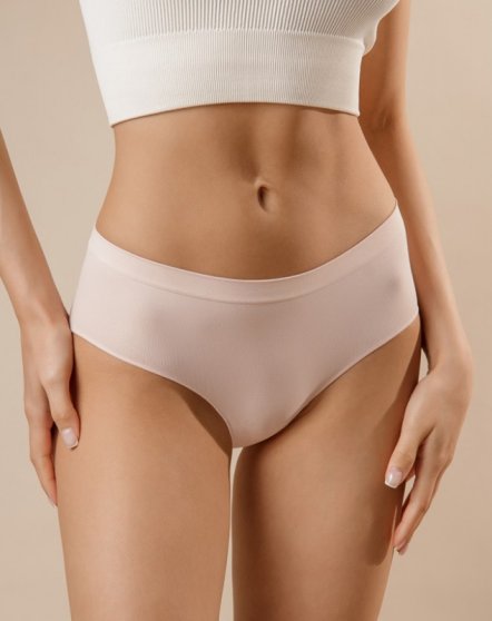 Оптовая продажа. Трусы слипы женские из мягкой микрофибры в тонкий рубчик, высокая посадка, широкий бочок, без боковых швов, х/б ластовица. Светлый бежевый цвет!