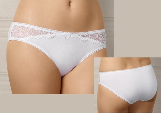 Оптовая продажа. Трусики-слипы из хлопка, передняя часть декорирована кружевом, атласный бантик.