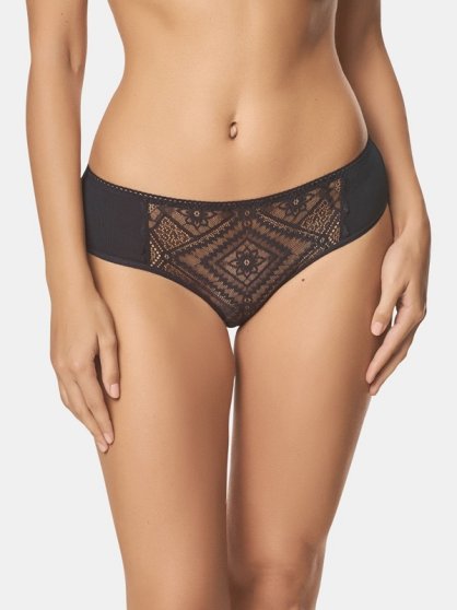 Производитель: LUI et ELLE Оптовая продажа. Трусики - слипы с широкой боковой частью, на передней детали вставка из гладкого кружева с графичным орнаментом, декоративная резинка по поясу. Состав: Хлопок: 95% Спандекс: 5%
