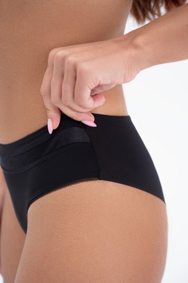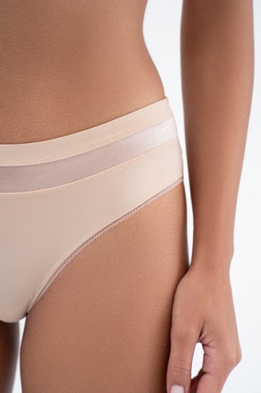 Оптовая продажа. Трусики-бикини женские из полиамидного волокна. Передняя деталь декорирована атласной вставкой, задняя часть изделия выполнена из нежного сетчатого полотна.