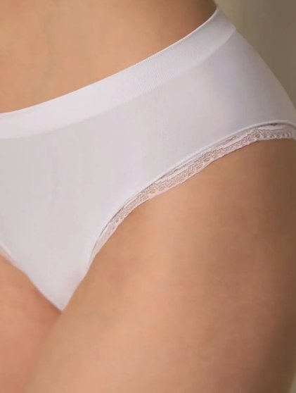 Оптовая продажа. Трусики слипы женские из мягкой микрофибры с добавлением эластана, средней линией талии, кружевной отделкой из кружева по ножке. Гигиеничная хлопковая ластовица позволяет избежать трения и раздражения кожи. Модель не ограничивает движения и обеспечивает комфорт в течении всего дня. Специальная бесшовная технология позволяет изделию идеально облегать тело, не оставляя следов от боковых швов. Благодаря свойствам микрофибры, бесшовное белье не мнется и не требует глажения.