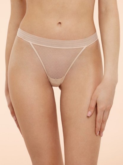 Производитель: Alla buone Оптовая продажа. Трусы стринги женские из ультралегкой прозрачной сеточки с рисунком "горошек", со средней линийе талии, х/б ластовицей. Состав: Полиамид: 90% Эластан: 10%