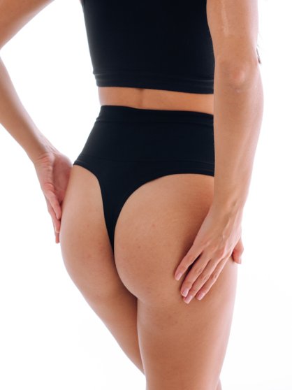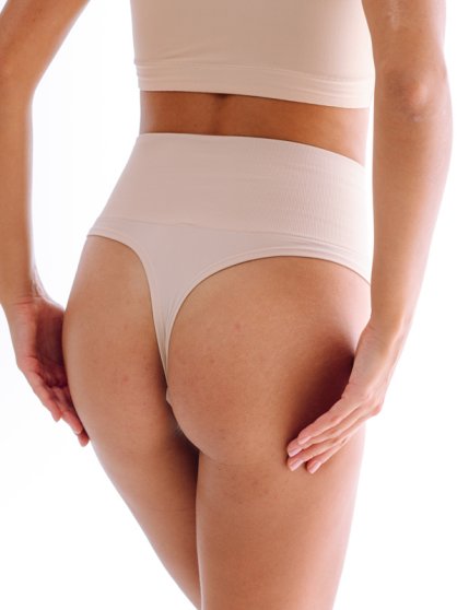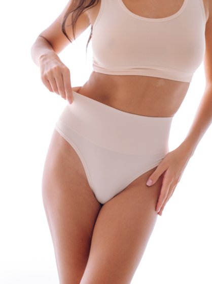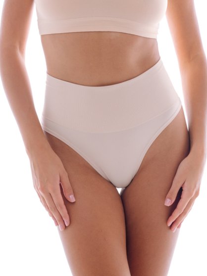 Оптовая продажа. Трусы стринги женские из полиамидного полотна, с высокой линией талии, двойным поясом с легкой коррекцией, бесшовные, с х/б ластовицей.