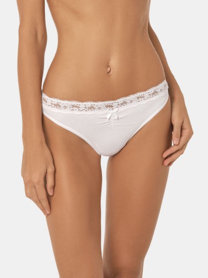 Оптовая продажа. Трусики - стринги женские из мягкого хлопкового полотна с кружевной вставкой по поясу, декоративной драпировкой и атласным бантиком на передней детали, по ножке тонкие эластичные резинки.