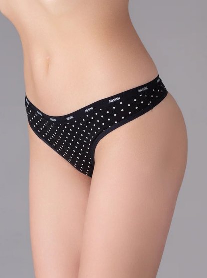 Производитель: Minimi Оптовая продажа. Трусы стринги женские из хлопка в горошек, средняя линия талии, мягкая резинка по талии с фирменным логотипом, х/б ластовица. Состав: Хлопок: 95% Эластан: 5%