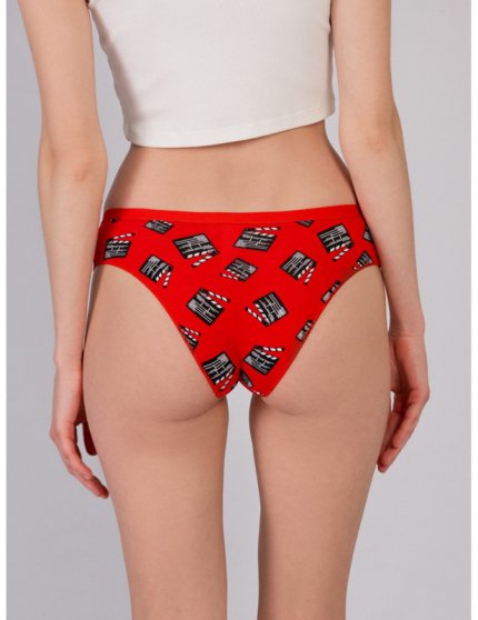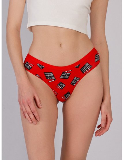 Оптовая продажа. Трусики танга женские из натурального хлопка, средней посадки, принтом с изображением "хлопушек" по всему полотну изделия. Модель дополнена гигиеничной х/б ластовицей.