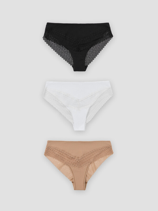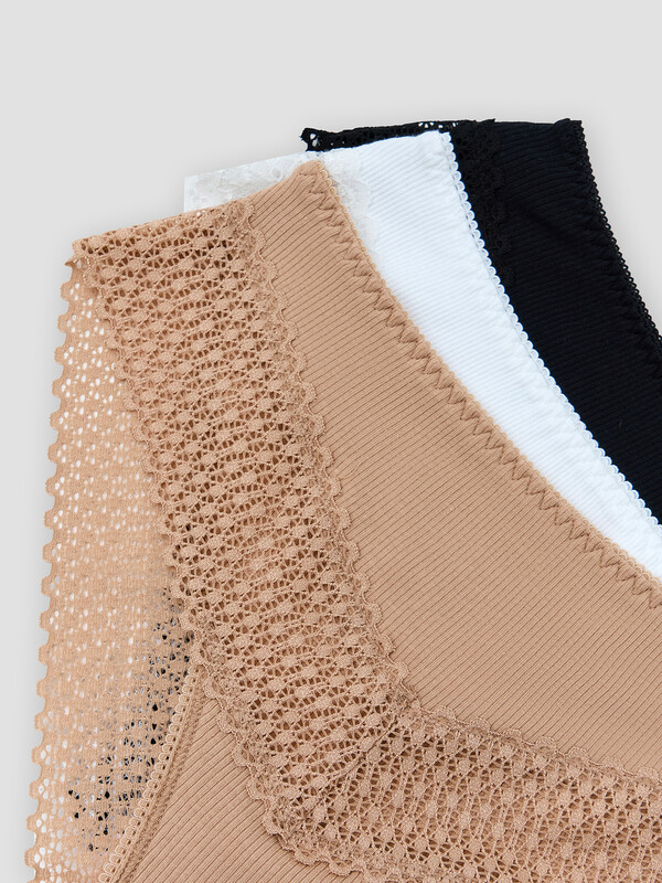 Этот набор женских трусов-слипов сочетает комфорт и элегантность в каждой детали. Модели со средней посадкой обеспечивают удобную посадку, подчеркивая естественный силуэт и обеспечивая свободу движений. Трикотажный материал рибана, из которого выполнены модели, дарит мягкость и эластичность, приятно прилегая к телу. Эластичная тесьма по талии гарантирует надежную фиксацию, а кружево на ножках добавляет утонченности и женственности в дизайн. Подкладка ластовицы выполнена из кулирной глади, обеспечивая дополнительный комфорт и гигиеничность. В наборе три модели, которые идеально подойдут для повседневной носки, сочетая стиль, удобство и приятные ощущения. Незаменимый элемент базового гардероба!
