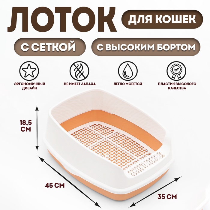 Туалет «Айша» S с высоким бортом и сеткой, 45 х 35 х 18,5 см, оранжевый