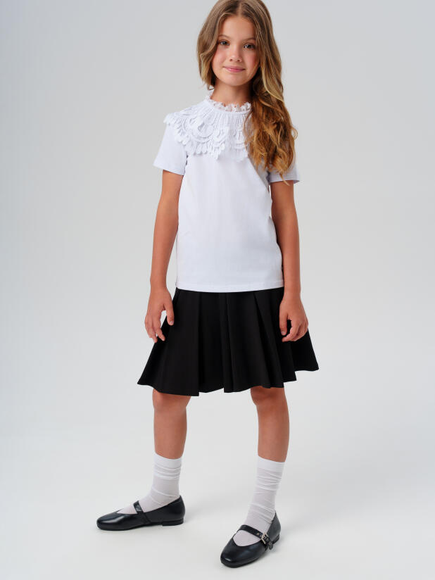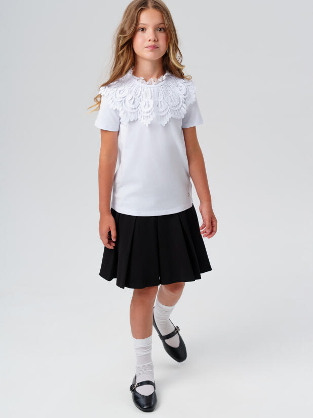 Совет по стилю: сочетайте эти удобные лаконичные туфли для школы с тёмными юбками, сарафанами или строгими платьями из школьной коллекции PlayToday. Для торжеств подойдут белая блузка и нарядные колготки.