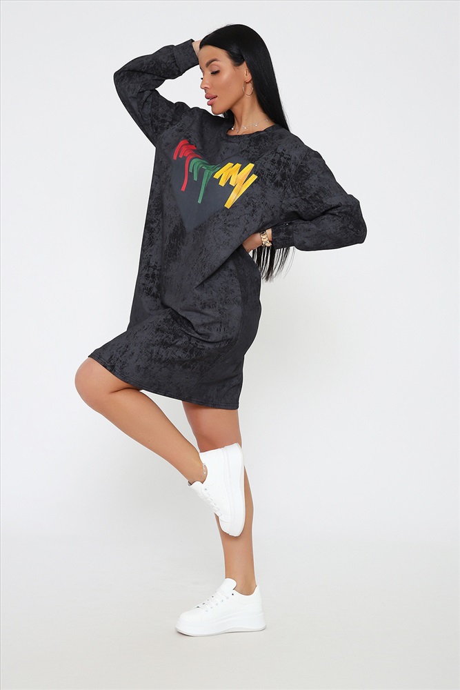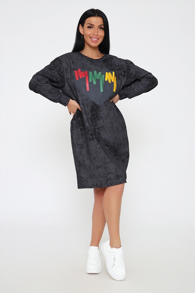 Туника женская с ярким принтом из футера двух нитки варёнка высокого качества кардэ. Модель в стиле оверсайз, длинный рукав на манжете, круглая горловина обработана обтачкой, спущенная пройма, в боковых швах удобные карманы. Стильная, бархатистая, приятная на ощупь туника, обеспечит вам максимальный комфорт и свободу движений. Туника - это универсальный вид одежды, актуально как для работы в офисе, так и для праздничного, повседневного гардероба.