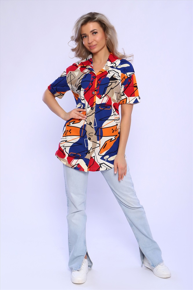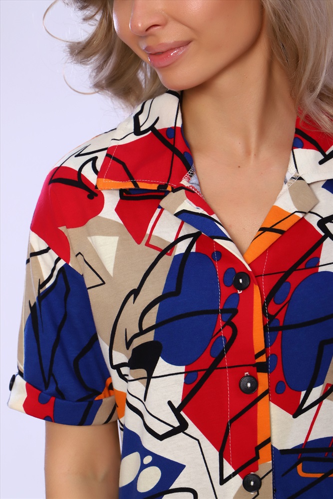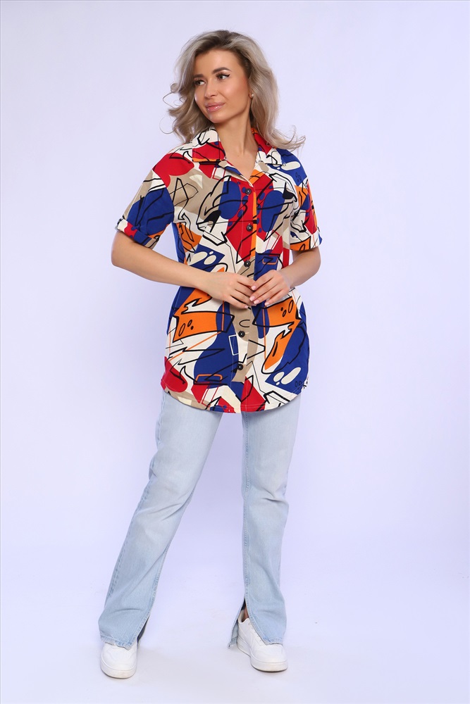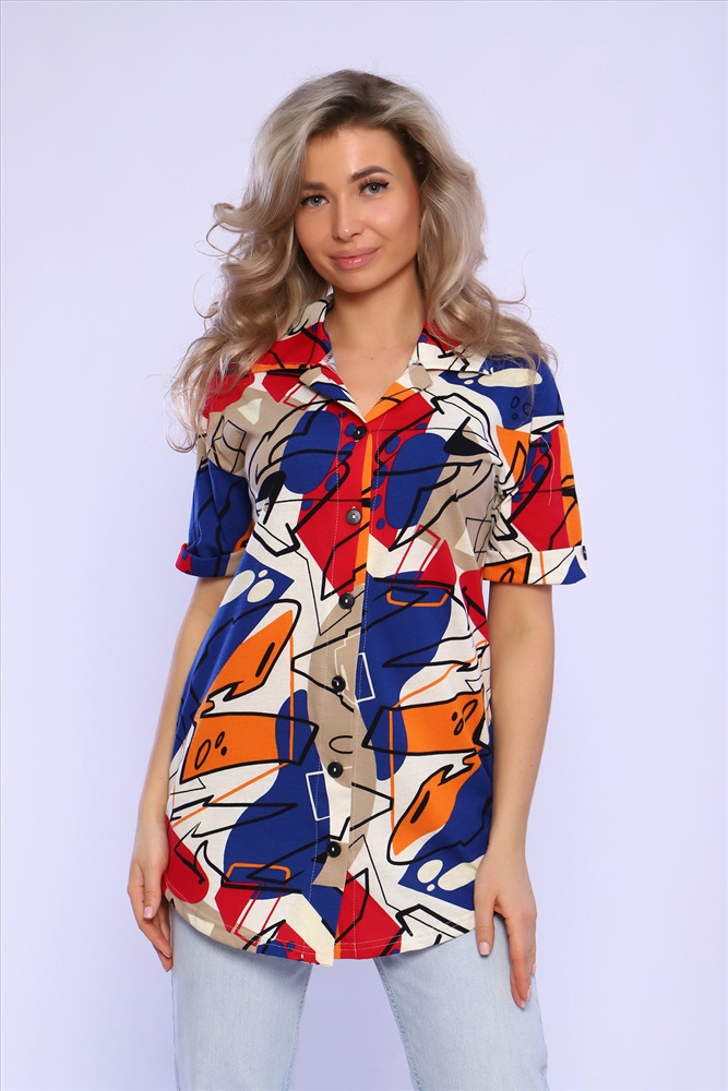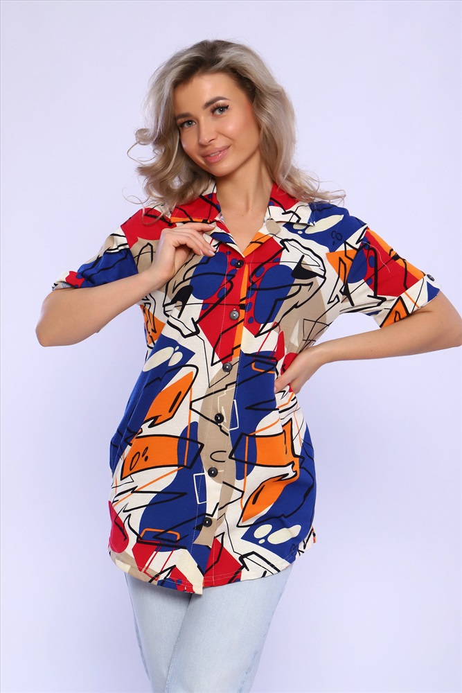 Состав: 100% хлопок Модель: Туника 13144 Тип товара: туника Материал: кулирка | кулирка Бренд: Натали Суслова Длина: короткий Карман: без карманов Отделка: с манжетами Рисунок: абстракция Рукав: короткий рукав Сезонность: лето | весна Силуэт: полуприлегающий Стиль: повседневный Воротник: отложной воротник Застежка: пуговицы Туника полуприлегающего силуэта на пуговицах и рубашечным воротником. Короткие рукава с отворотными манжетами, закрепленными пуговицами. Карманы в боковых швах. Низ изделия полукруглый с удлиненной спинкой. Таблица размеров и веса