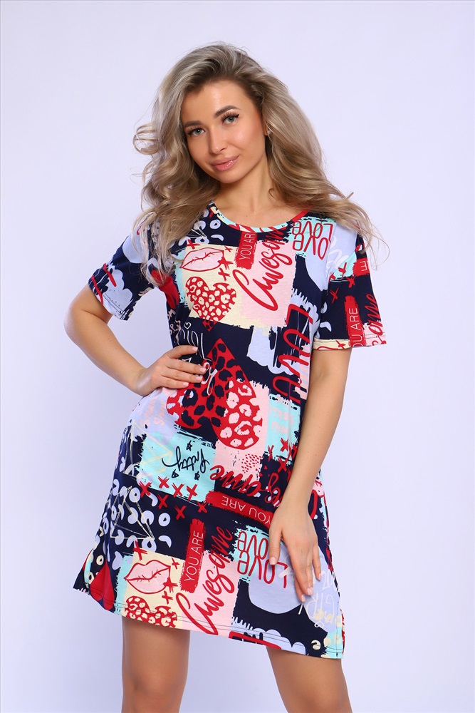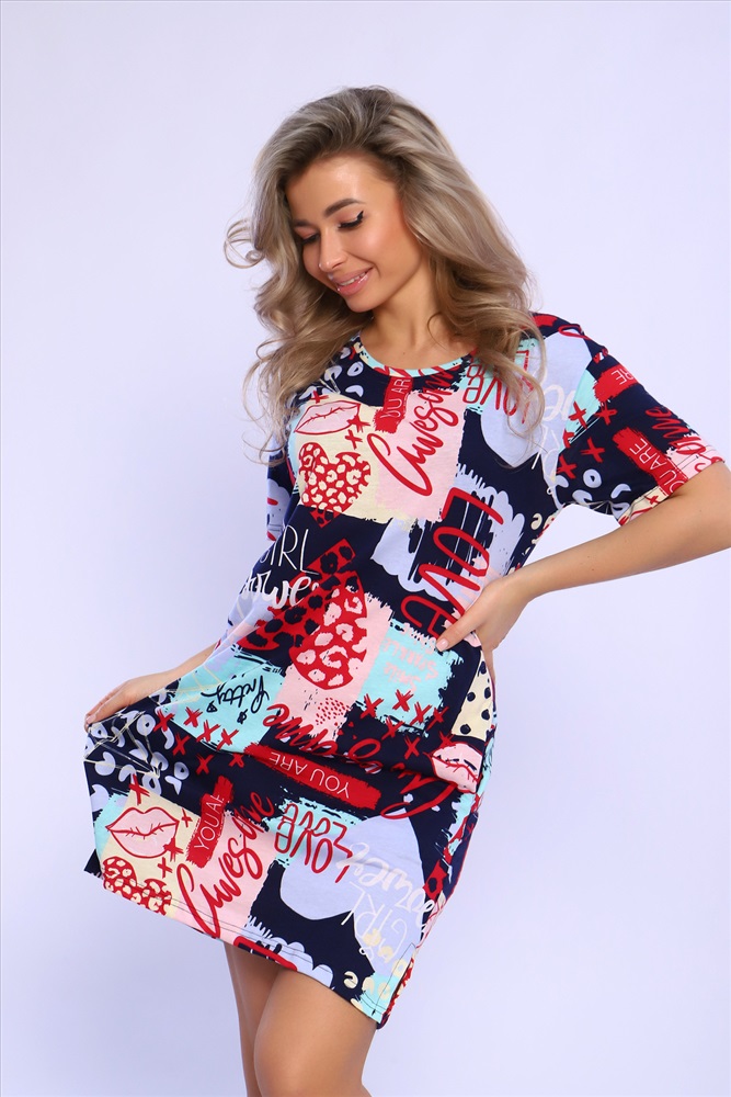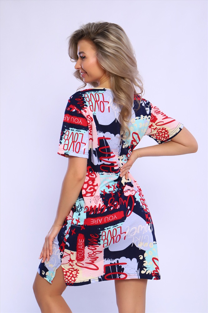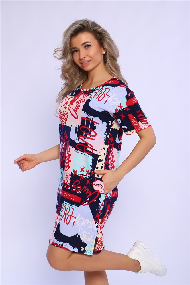 Туника свободного кроя с короткими рукавами. В боковых швах карманы и небольшие разрезы. Идеальна для повседневной носки.