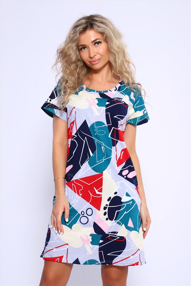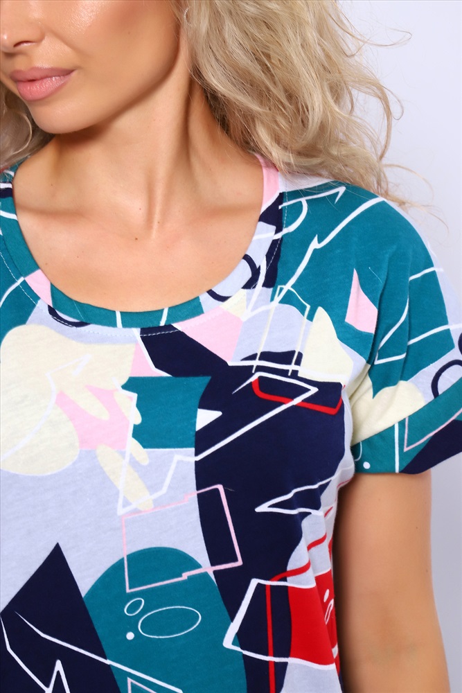 Состав: 100% хлопок Модель: Туника 13208 Тип товара: туника Материал: кулирка | кулирка Бренд: Натали Суслова Карман: боковые Отделка: с карманами Рисунок: абстракция | геометрия Рукав: короткий рукав Сезонность: лето | осень | весна | зима Силуэт: полуприлегающий | прямой Стиль: повседневный Воротник: без воротника Застежка: без застежки Туника свободного кроя с манжетами на спущенном плече. В боковых швах карманы и небольшие разрезы. Таблица размеров и веса