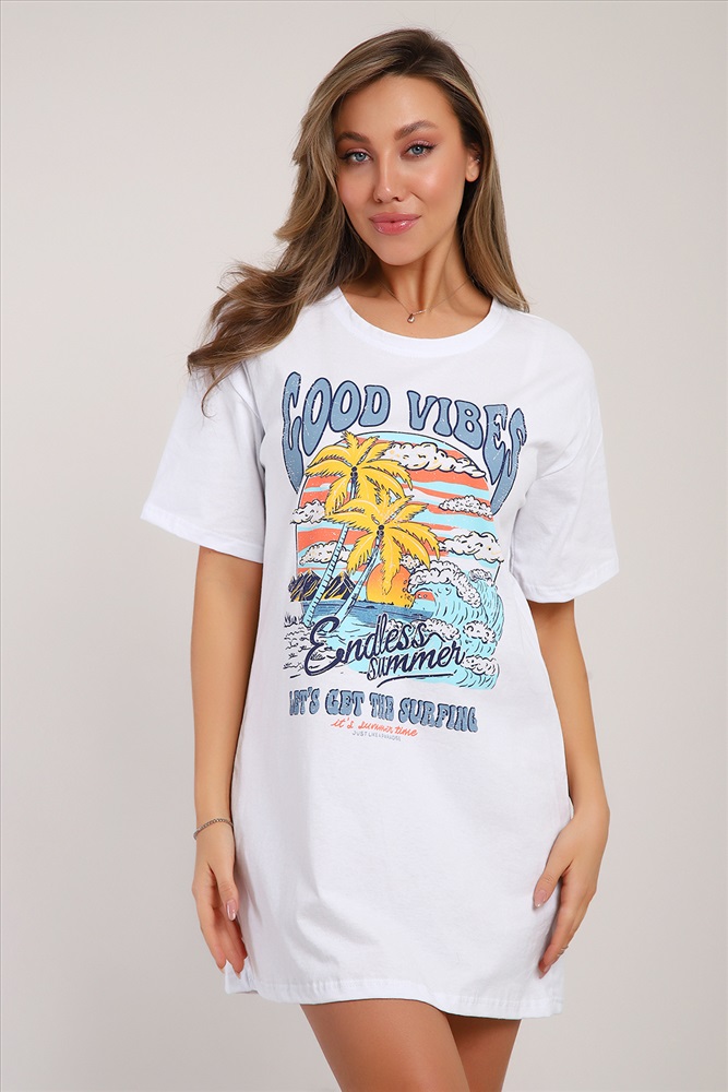 Состав: 100% хлопок Модель: Туника 21091 Тип товара: туника Материал: кулирка | кулирка Бренд: Натали Суслова Карман: без карманов Назначение: для дома Отделка: с печатью Рисунок: надпись | разное Сезонность: лето | осень | весна | зима Силуэт: свободный Стиль: домашний Воротник: без воротника Застежка: без застежки Туника свободного кроя с круглым вырезом горловины и короткими рукавами на спущенном плече. Таблица размеров и веса