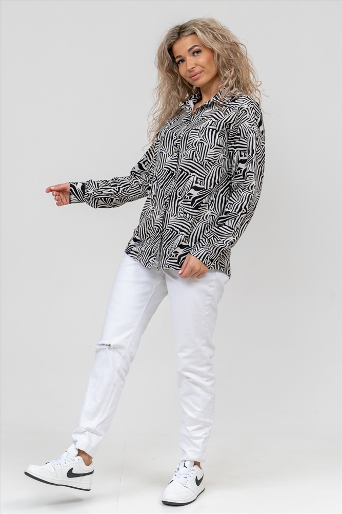 Состав: 100% хлопок Модель: Туника 36662 Тип товара: туника Материал: кулирка | кулирка Бренд: Натали Суслова Длина: средняя длина Карман: накладные Отделка: с карманами | с манжетами Рисунок: анималистичный Рукав: длинный рукав Сезонность: лето | осень | весна | зима Силуэт: свободный Стиль: молодежный | повседневный Воротник: рубашечный воротник Застежка: пуговицы Модная рубашка в стиле oversize выполнена из 100% хлопчатобумажного полотна с трендовым анималистичным принтом зебра. Благодаря своей монохроматической цветовой палитре зебра делает любой образ уникальным и выразительным. Черно-белая расцветка будет самой актуальной в этом сезоне. Главное преимущество зебры сочетать ее можно абсолютно с любым оттенком, поэтому вам не придется переживать за целостность образа. Но будьте осторожны в комплект к моделям с принтом лучше выбирать однотонные вещи, чтобы не перегружать лук. Это одна из самых модных и популярных моделей сезона. Рубашка имеет слегка удлинённую спинку, спущенную линию плечевого шва, классический рубашечный воротник, накладной карман, планку и манжеты на пуговках. За счёт свободного фасона рубашку можно носить с любым типом фигуры, отлично подойдёт для беременных женщин, а также кормящих мам. Женская хлопковая рубашка идеальна как для лета, так и для прохладного вечера. С помощью такой рубашки Вы можете создать деловой образ или летний расслабленный. А также отправиться на праздник или вечеринку, на прогулку, на пляж или провести незабываемый вечер дома. Модель такого плана идеально подойдёт и в качестве подарка для себя и своих любимых! Современная туника - это почти неотъемлемая часть гардероба любой женщины, которая сделает Вас неотразимой в любой ситуации. Ориентируясь по таблице замеров, обратите внимание, что замеры длины рукава проводились от точки основания шеи. Таблица размеров и веса