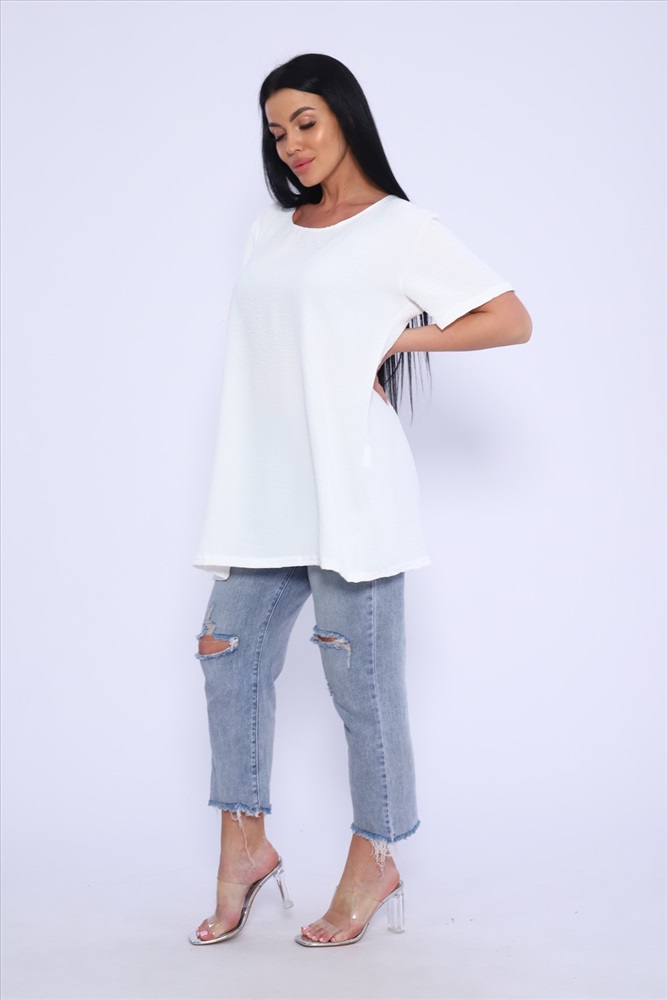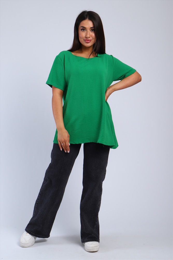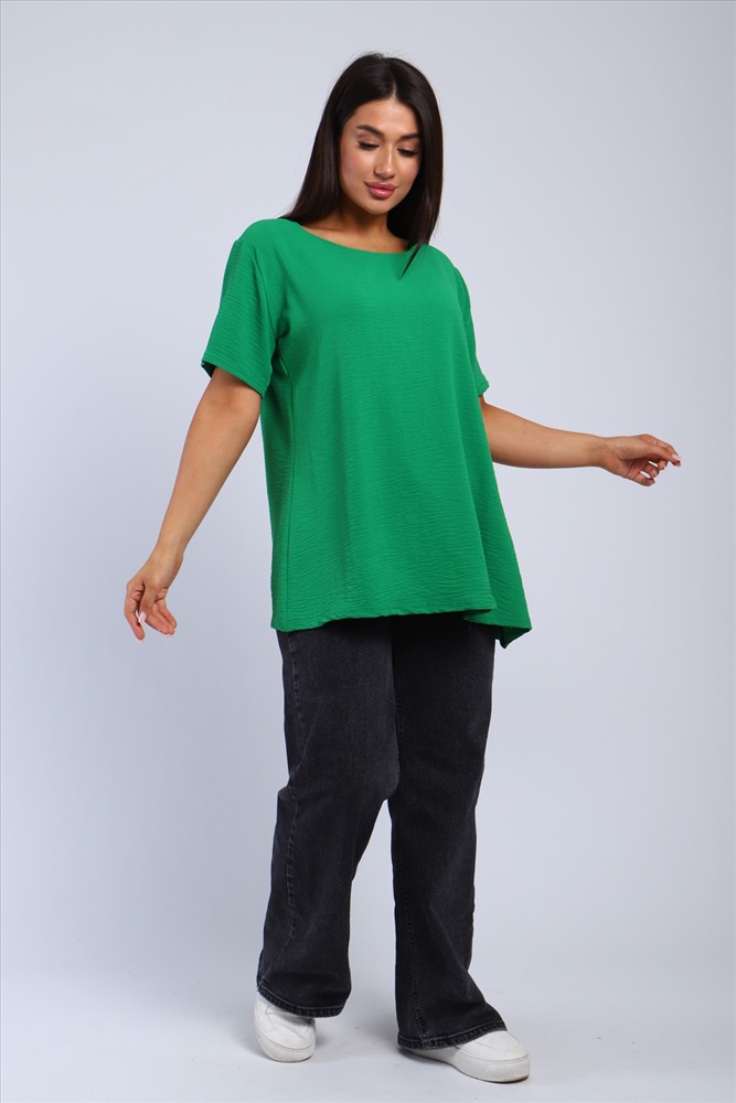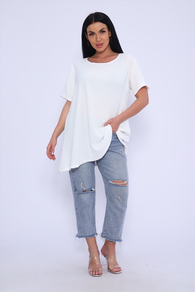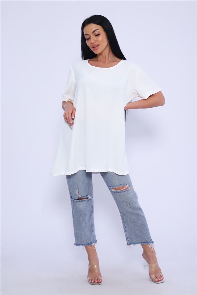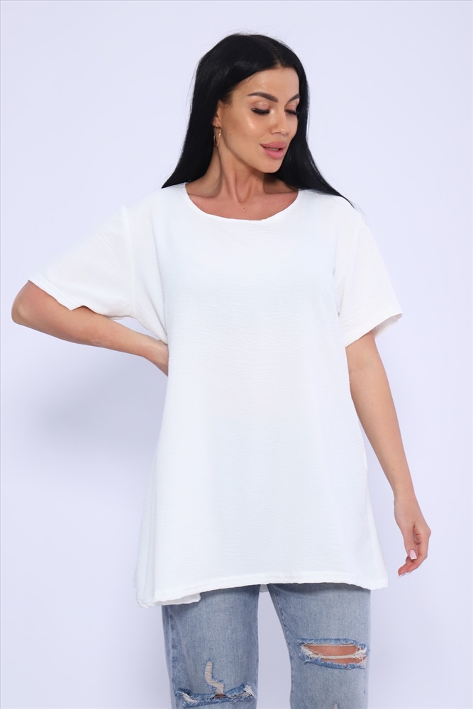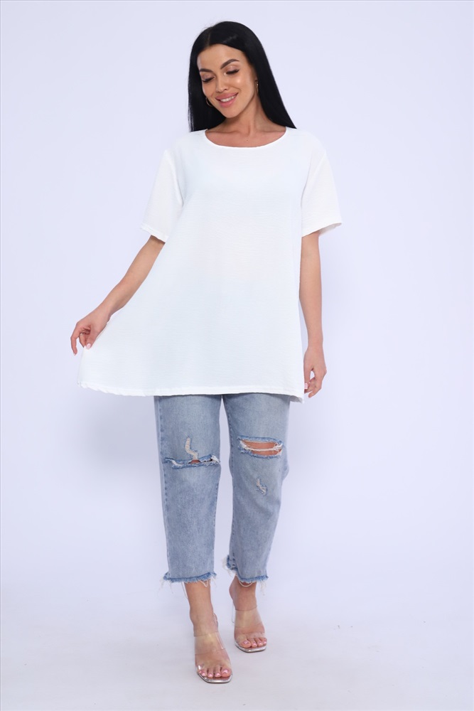 Застежка: без застежки Туника удлиненная женская свободного кроя. Изделие имеет фигурный низ, А-силуэт, короткий рукав и округлая горловина. Туника выполнена из сингапура - легкой и приятной летней ткани. Такая модель подойдет для повседневной носки, как и по дому, так и на улице.