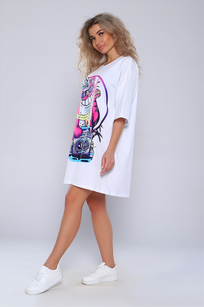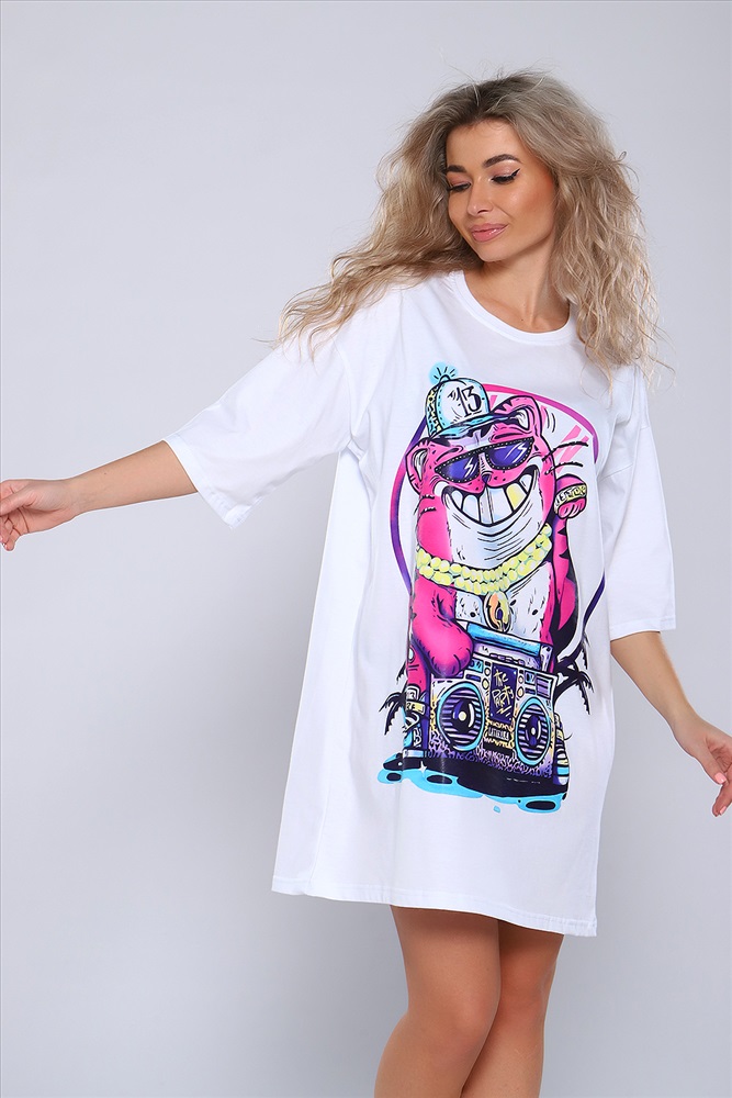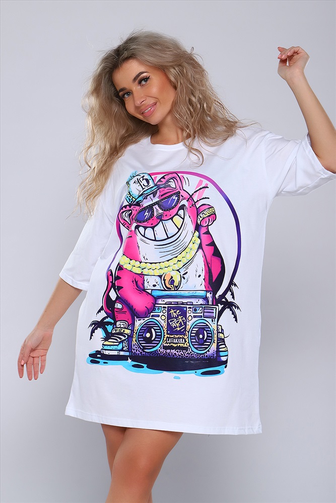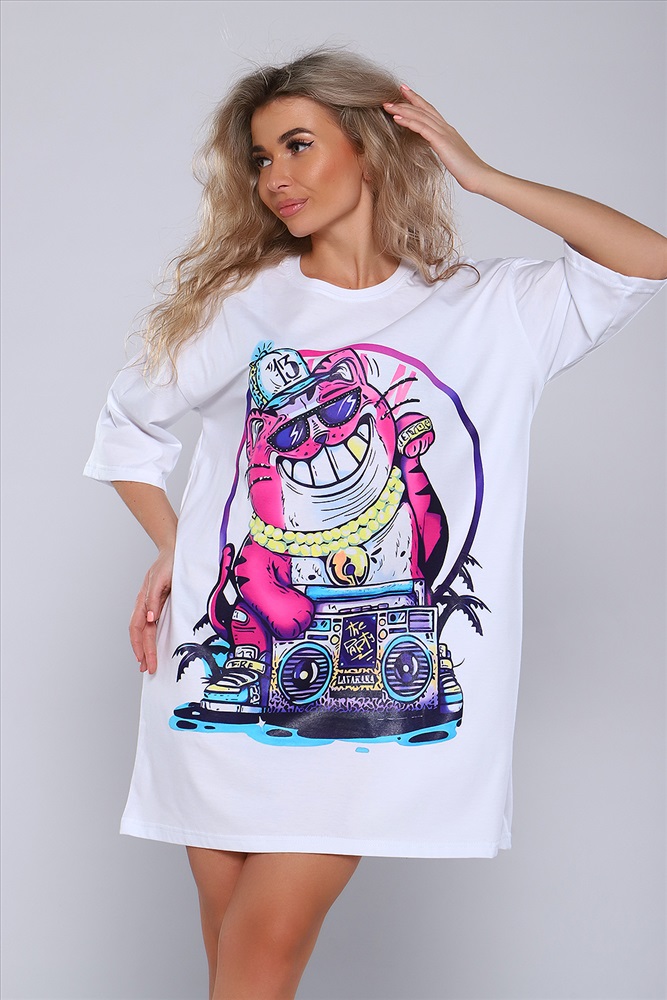 футболка, туника женская Oversize с интересным принтом для дома и сна, для пляжа. Футболка , женская свободная, прямая, классическая из хлопка незаменимая и удобная одежда летняя, повседневная .Ткань кулирка пенье, плотность 160 г.