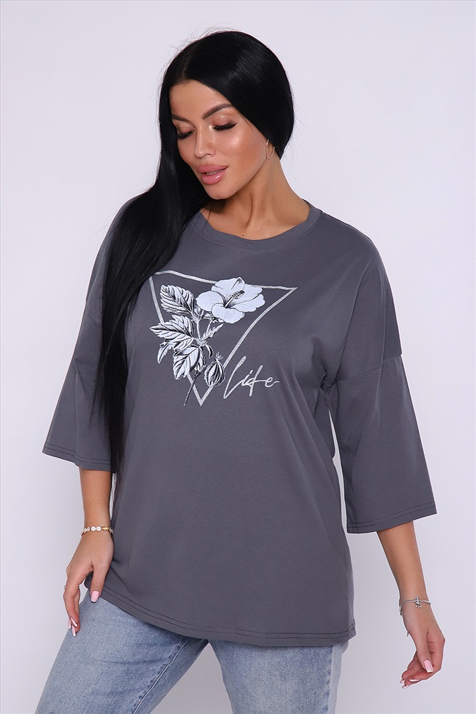 Состав: хлопок 100% Модель: Туника 80025 Тип товара: туника Материал: кулирка | кулирка Бренд: Натали Суслова Длина: средняя длина Карман: без карманов Отделка: с печатью Рисунок: надпись | цветы Рукав: рукав 3/4 Сезонность: лето | осень | весна Силуэт: свободный Стиль: повседневный Воротник: без воротника Застежка: без застежки Туника из натурального хлопка прекрасный вариант для повседневного образа. Оригинальный принт с использованием глиттера украшает модель, придавая ей изысканный вид. Обработка деталей вкруговую с закрепкой, рукав длиной 3/4, горловина втачная из основной ткани. Большие размеры. Таблица размеров и веса