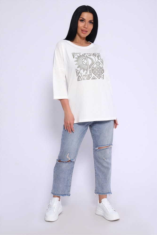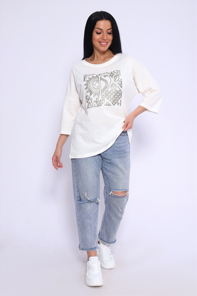 Состав: 100% хлопок Модель: Туника 80030 Тип товара: туника Материал: кулирка | кулирка Бренд: Натали Суслова Длина: короткий Карман: без карманов Отделка: с печатью Рейтинг: Рейтинг 4 и выше Рисунок: узоры Рукав: рукав 3/4 Сезонность: лето | осень | весна Силуэт: свободный Скидка: любая Стиль: повседневный Воротник: без воротника Застежка: без застежки Туника свободного кроя из мягкого, натурального хлопка подарит ощущение комфорта и уюта. Оригинальный принт с использованием глиттера и техники объёмной печати украшает модель, придавая ей изысканный вид. Обработка деталей вкруговую с закрепкой, рукав длиной 3/4, горловина втачная из основной ткани. Большие размеры! Таблица размеров и веса