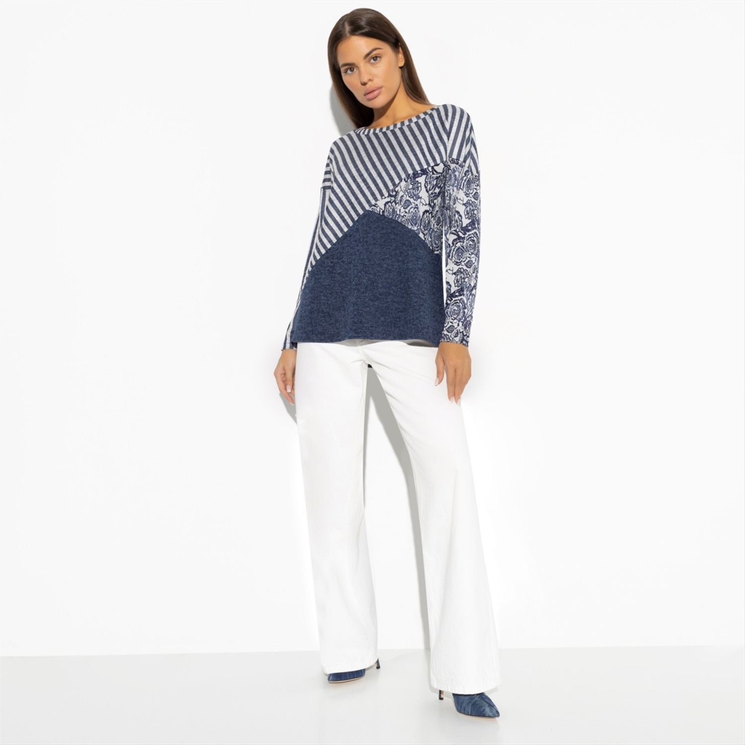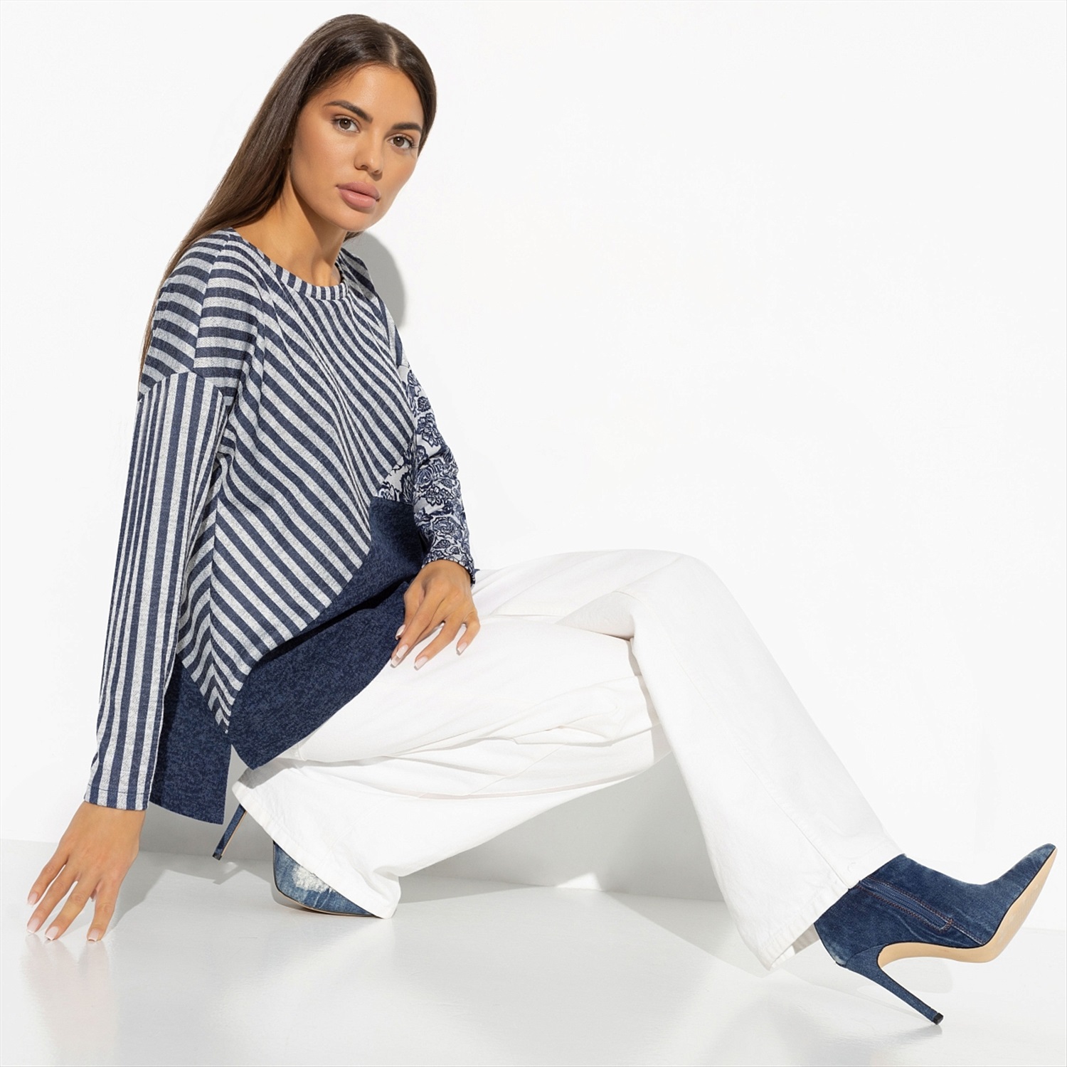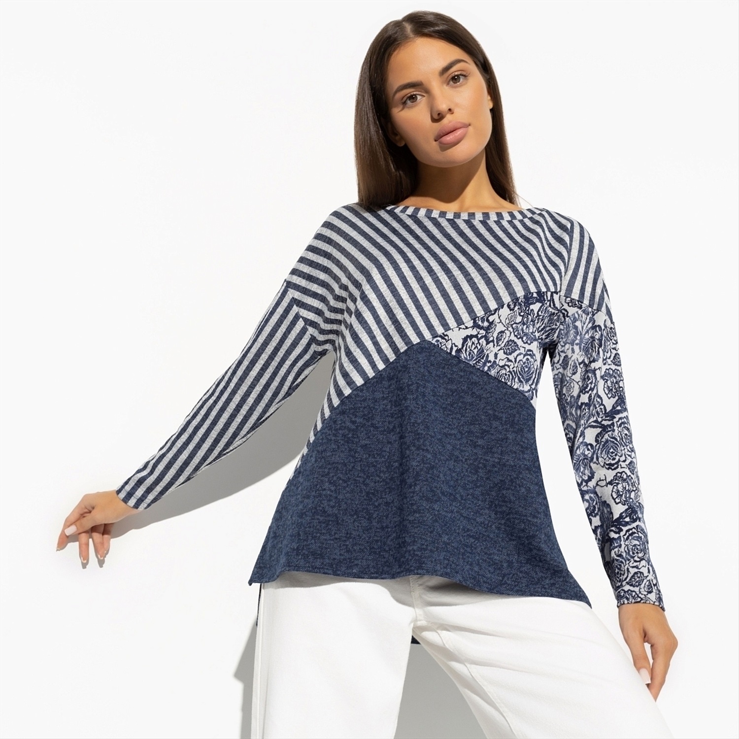 Вообразите, насколько легко стать действительно запоминающимся в этой тунике! Её дизайн вдохновлён необычными сочетаниями — представьте себе голубую матчу на кокосовом молоке или голубичный макарон. Изысканное и одновременно смелое сочетание цветов и узоров станет вашим отличительным знаком. Спинка изделия чуть удлинена, что добавляет комфорта и стильной небрежности в облик. Оптом такая туника станет отличным решением для тех, кто хочет предложить своим клиентам нечто большее, чем просто одежду — настоящее искусство, переведённое в моду. Это идеальный выбор для современных женщин, стремящихся выделиться и заявить о своём тонком вкусе.