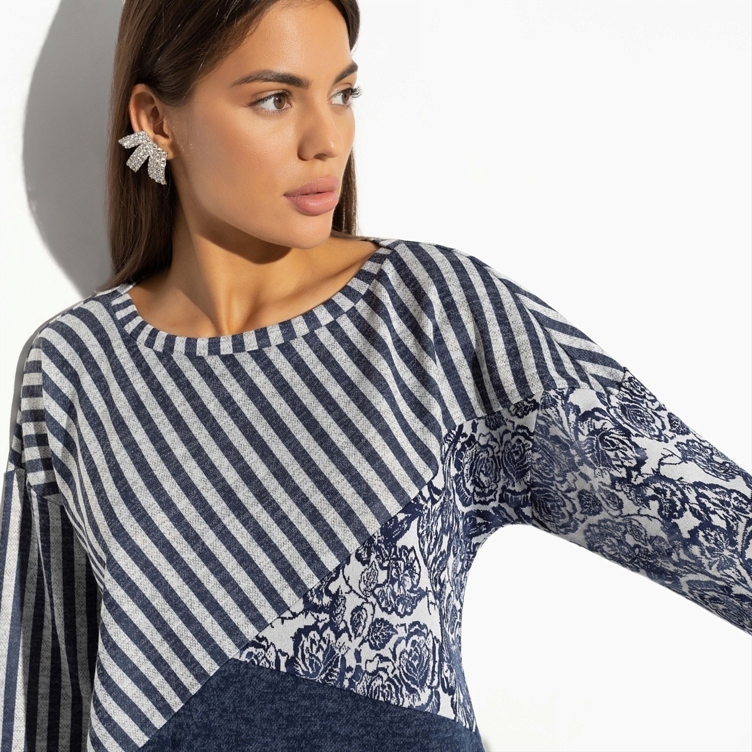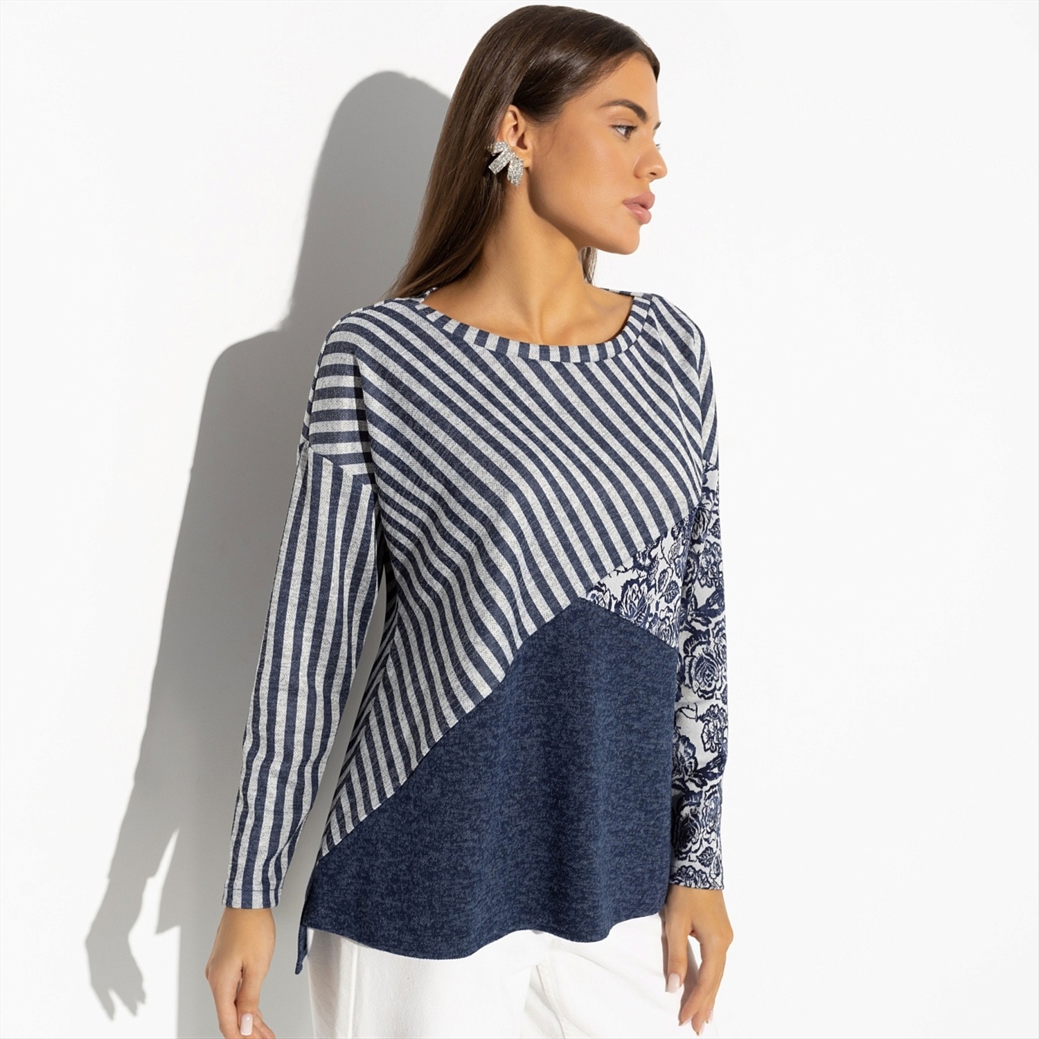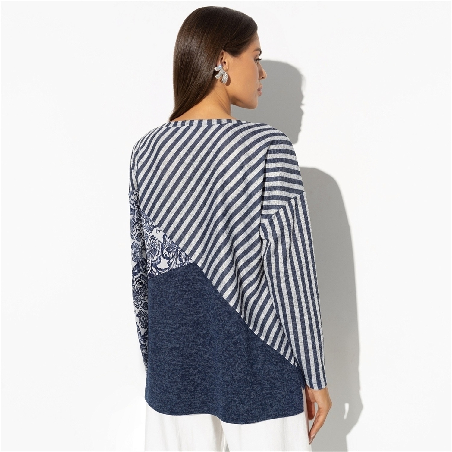 Вообразите, насколько легко стать действительно запоминающимся в этой тунике! Её дизайн вдохновлён необычными сочетаниями — представьте себе голубую матчу на кокосовом молоке или голубичный макарон. Изысканное и одновременно смелое сочетание цветов и узоров станет вашим отличительным знаком. Спинка изделия чуть удлинена, что добавляет комфорта и стильной небрежности в облик. Оптом такая туника станет отличным решением для тех, кто хочет предложить своим клиентам нечто большее, чем просто одежду — настоящее искусство, переведённое в моду. Это идеальный выбор для современных женщин, стремящихся выделиться и заявить о своём тонком вкусе.