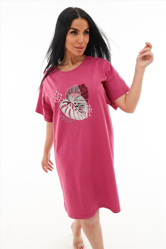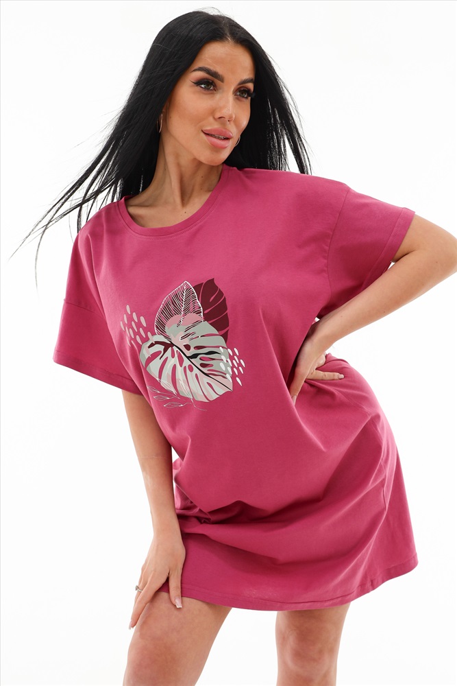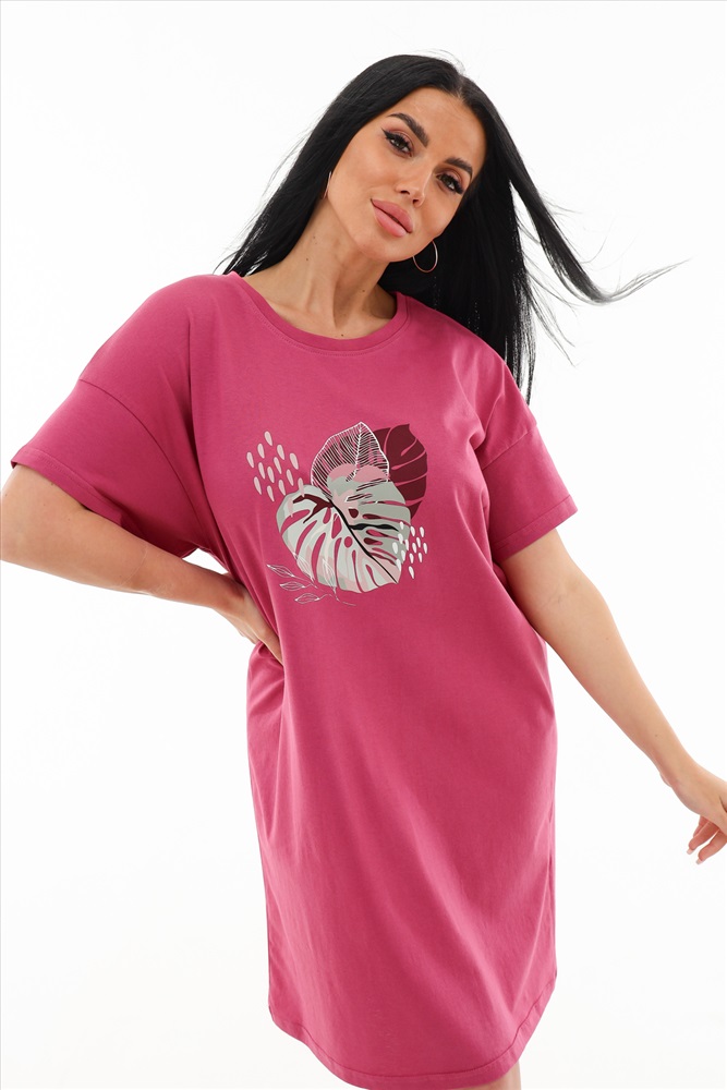 Туника приятно прилегает к телу и позволяет коже дышать. Оптимальная длина, короткие рукава и округлый вырез горловины отлично подойдет для дома и отдыха, дачи и прогулок.