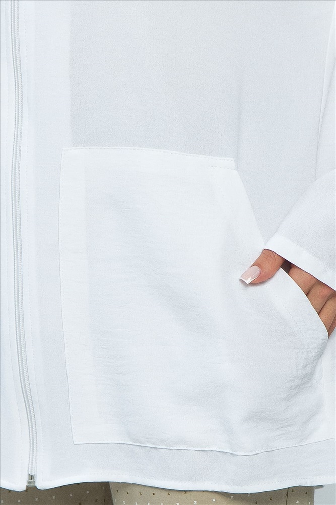 Туника на молнии с капюшоном — отличный выбор для лета. Она удобная и функциональная. Удлинённая модель оверсайз идеально сидит на любой фигуре, позволяя выразить свою индивидуальность без ущерба для комфорта. Длинные свободные рукава обеспечивают свободу движений, делая эту одежду удобной для активного дня. Карманы добавляют стиля и функциональности. Носить модель можно в качестве самостоятельного элемента гардероба или как верхний слой нараспашку.