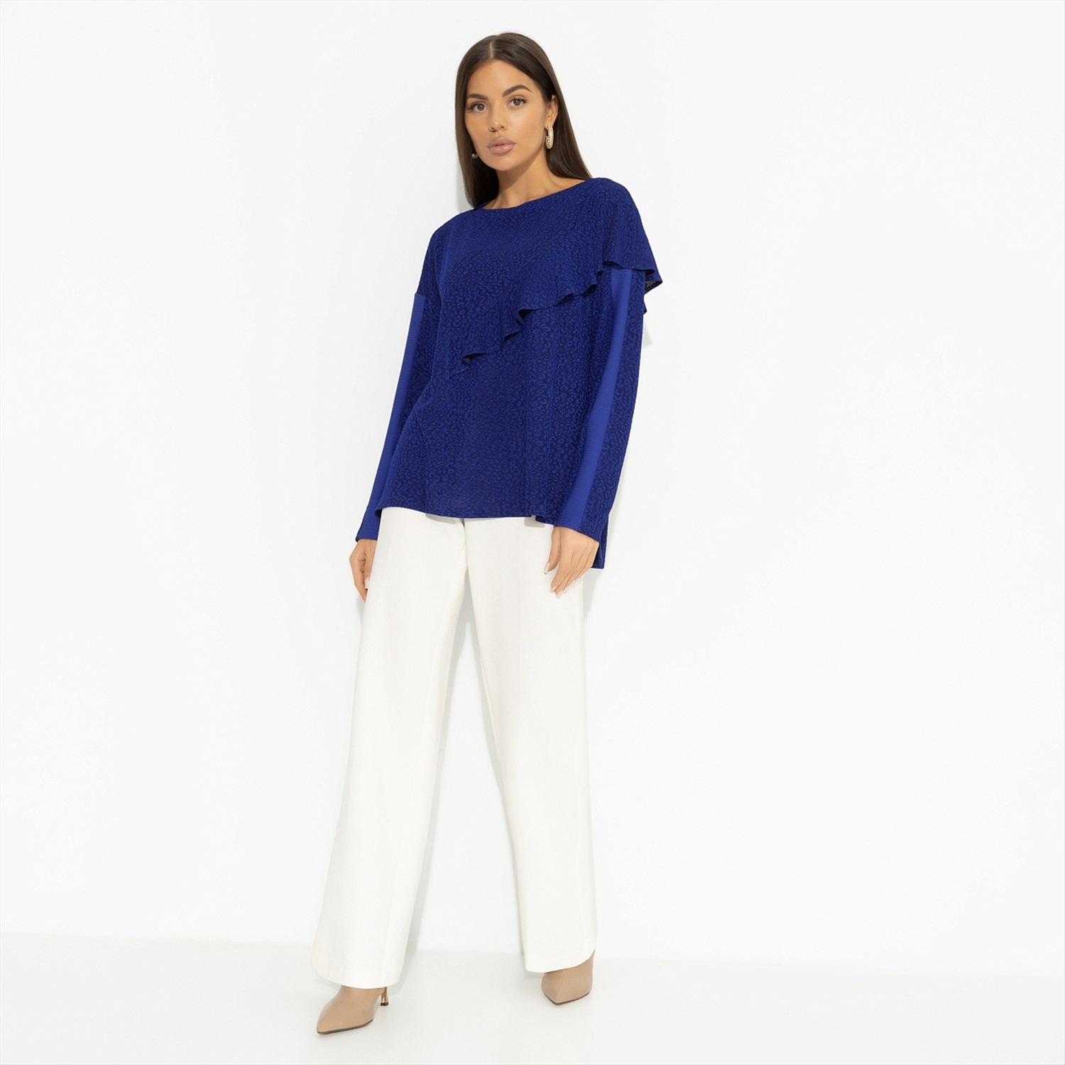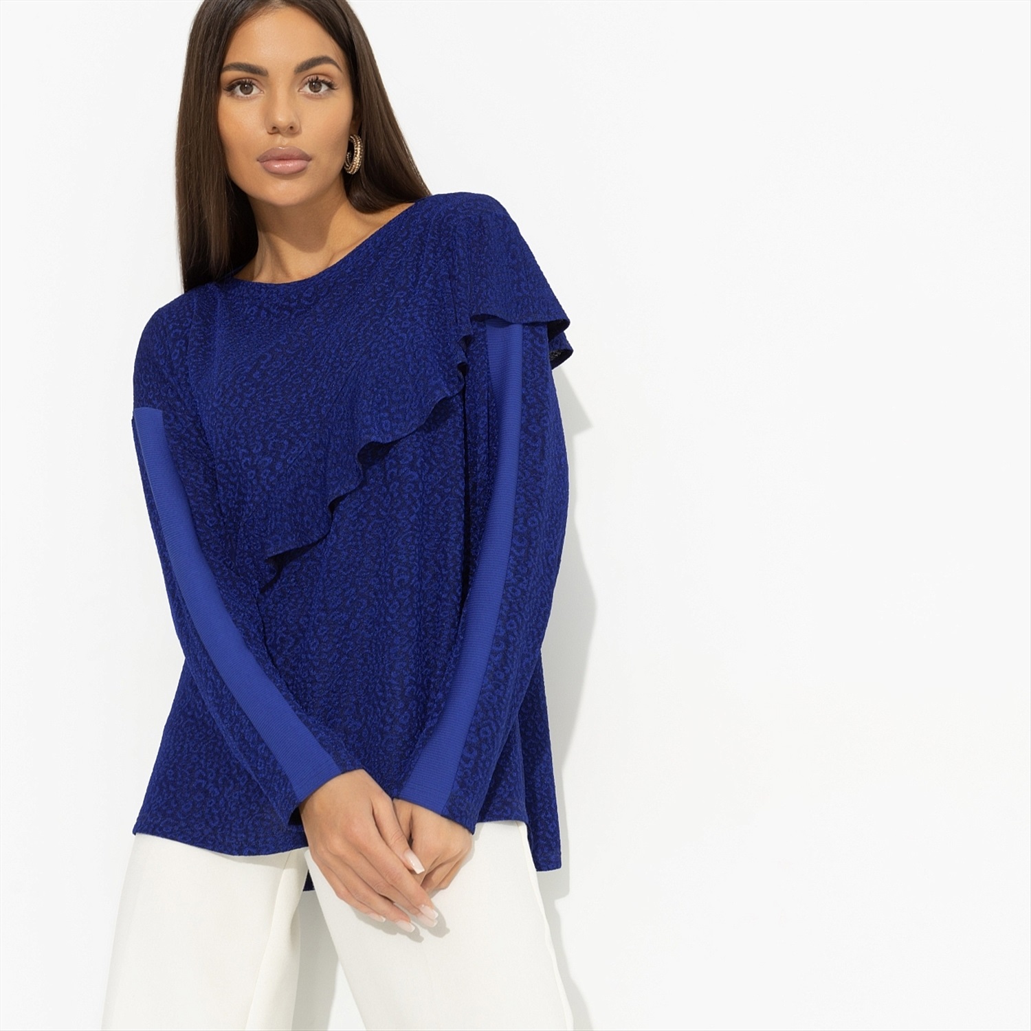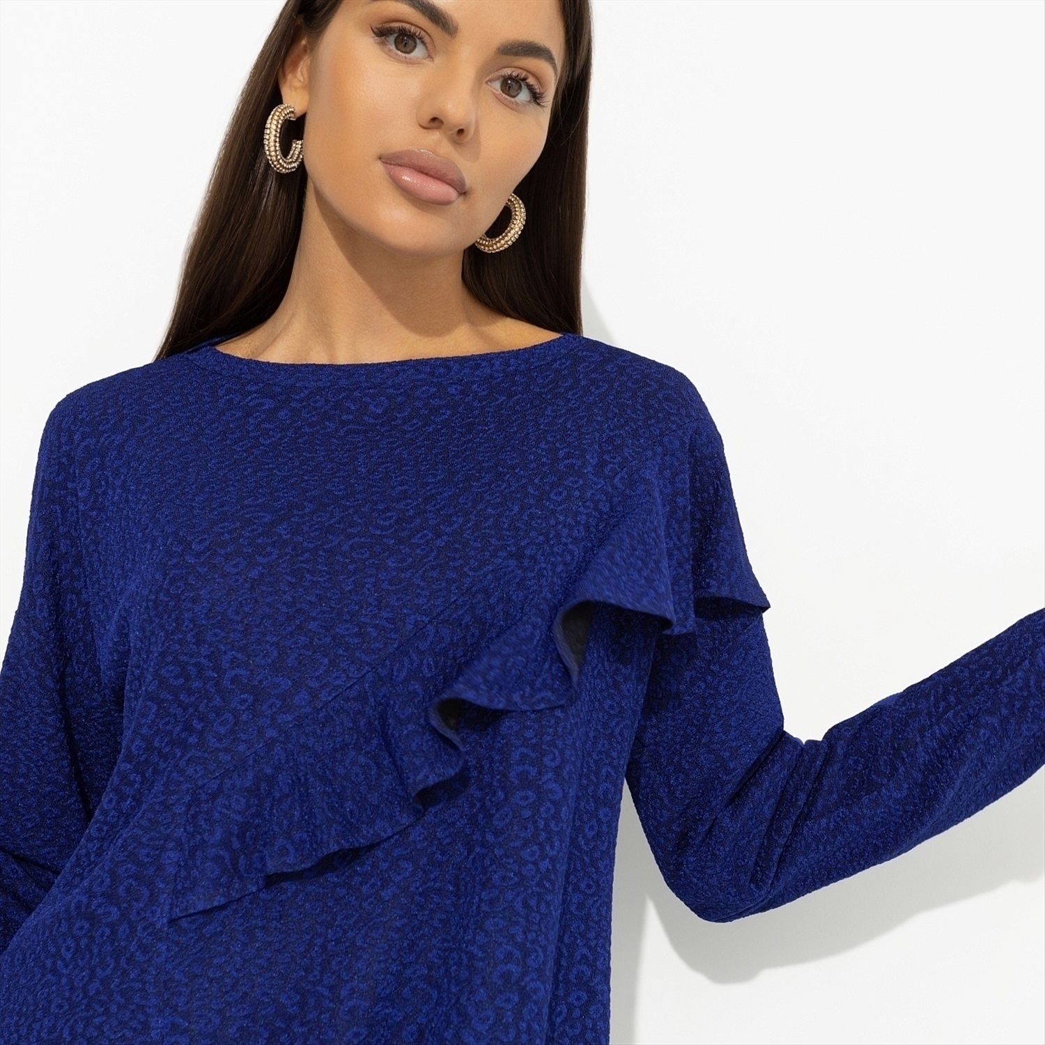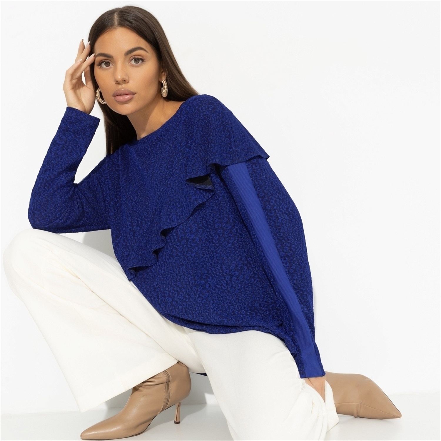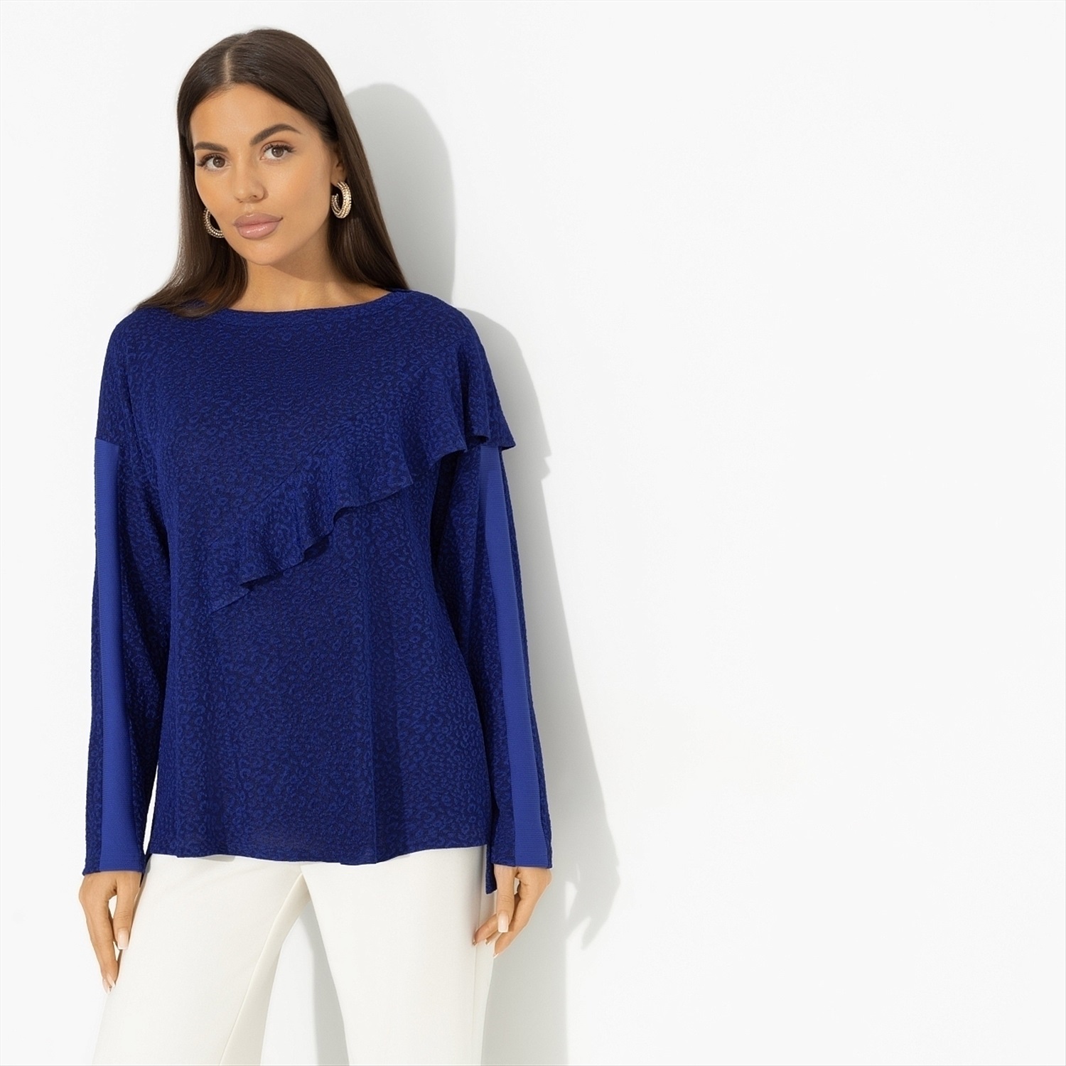 Когда он увидел тебя в тунике CHARUTTI пронзительного синего цвета, захотел подарить тебе звезду. Мужчина захотел, мужчина сделал. Повестка в виде звезды, сережки со звездами и картина авторства именитого художника тоже со звездой. Вдохновила так вдохглвила! Туника свободного кроя. Материал изделия текстурный. Объемный декор в виде волана с двух сторон изделия. Рукава оформлены прошитым лампасом в тон.