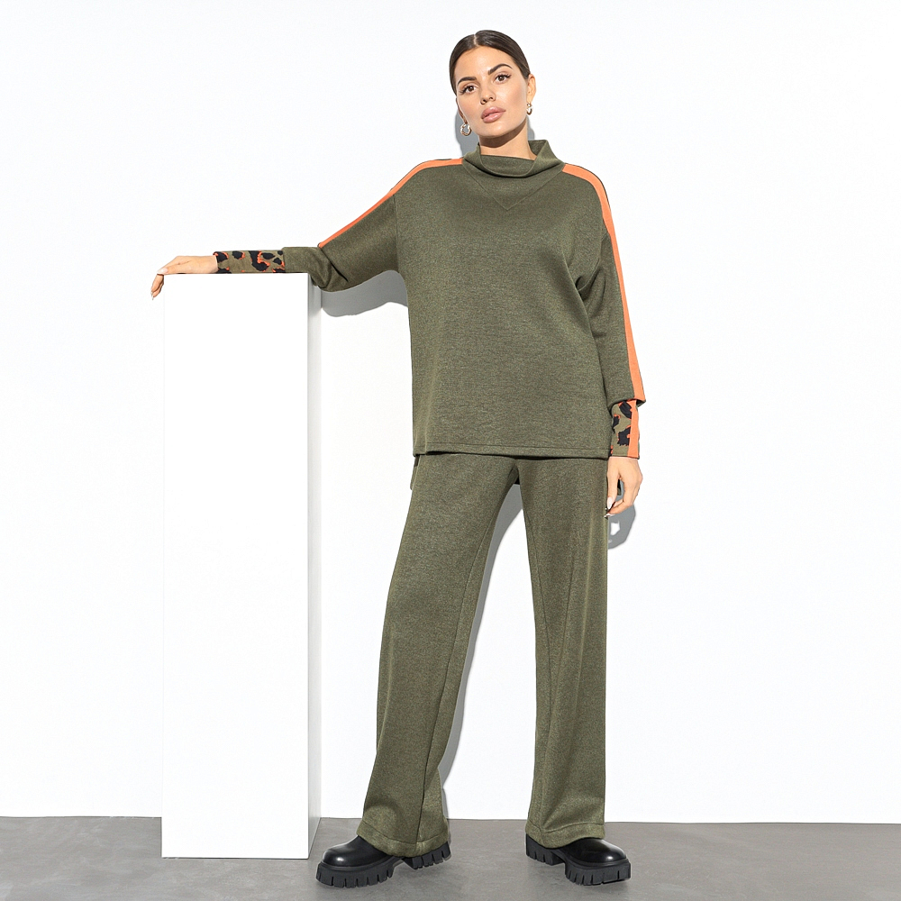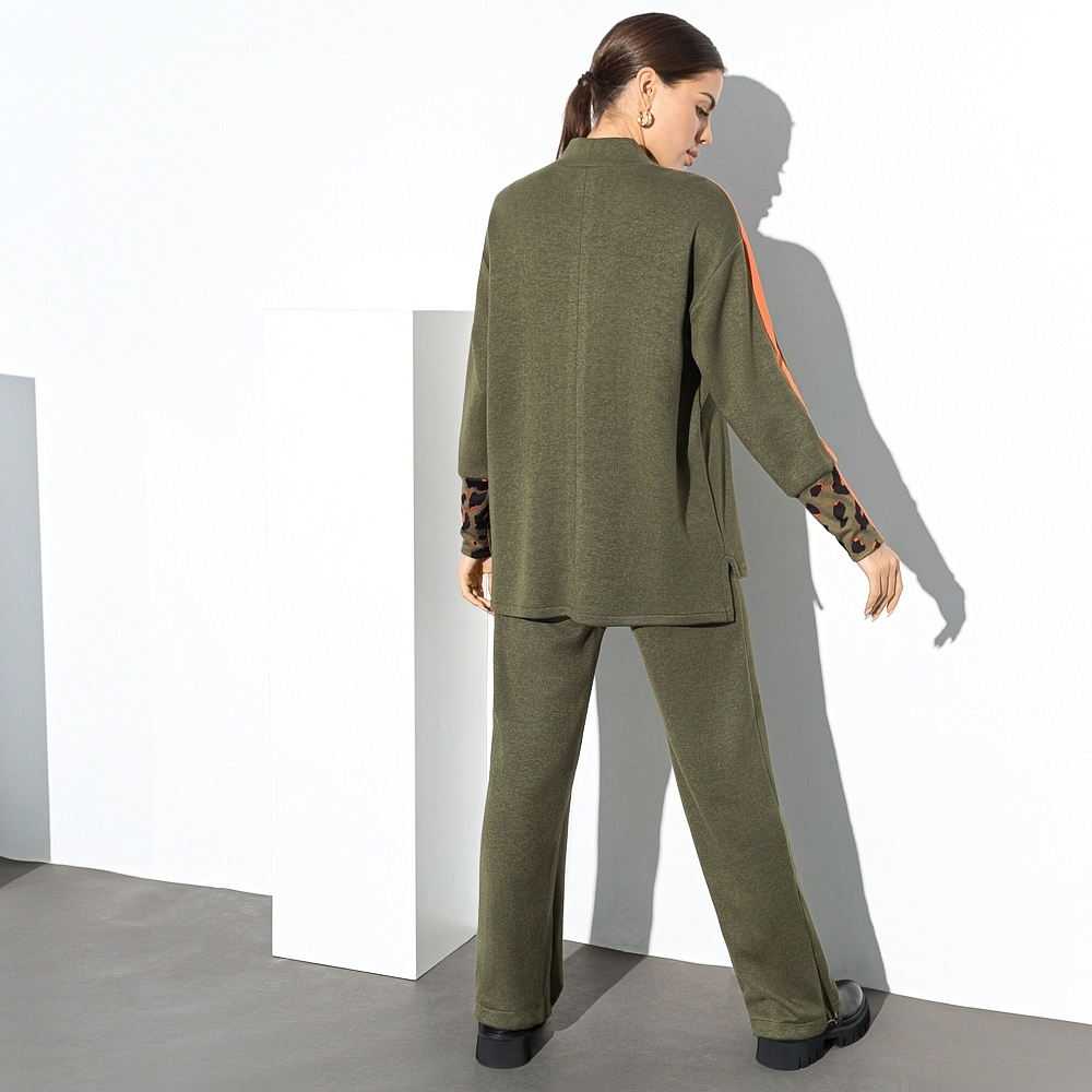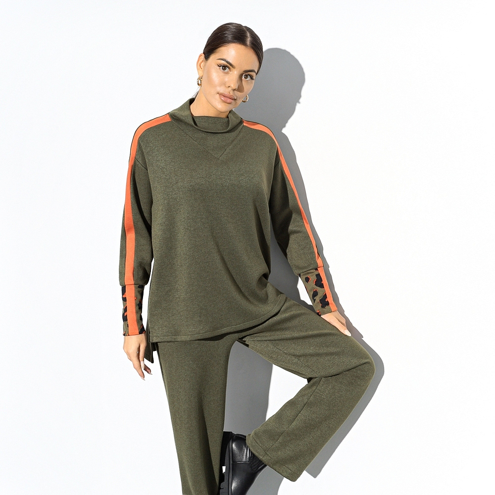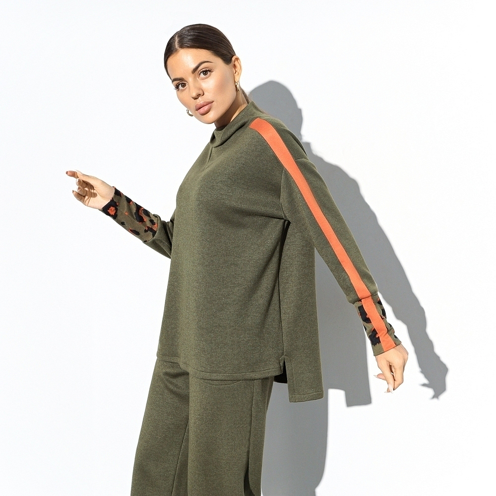ТН ВЭД: 6106909000; Состав: Трикотаж двухсторонний «евроангора» (65% п/э, 30% ангора, 5% спандекс); Плотность ткани: Плотная; Тип ткани: Трикотаж; Вид застежки: Нет; Дополнительный цвет ткани: Мранжевый; Карманы: Нет; Основной цвет ткани: Зелёный; Отрезная талия: Нет; Подклад: Нет; Резинка по талии: Нет; Рисунок/раппорт: Каждое изделие уникально из-за расположения рисунка на ткани; Сезон: Зима