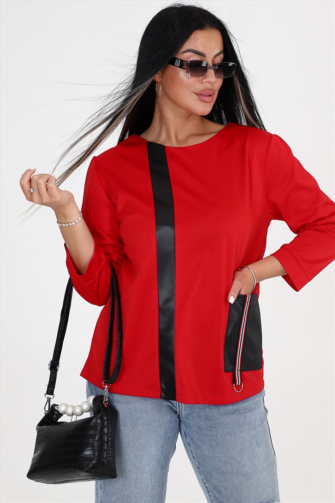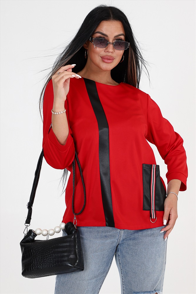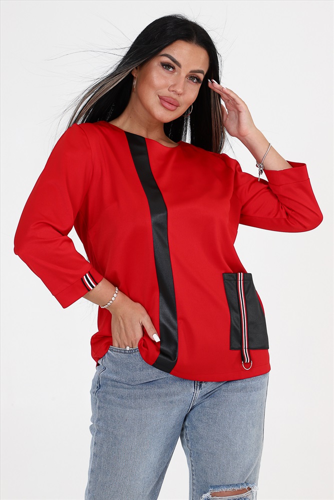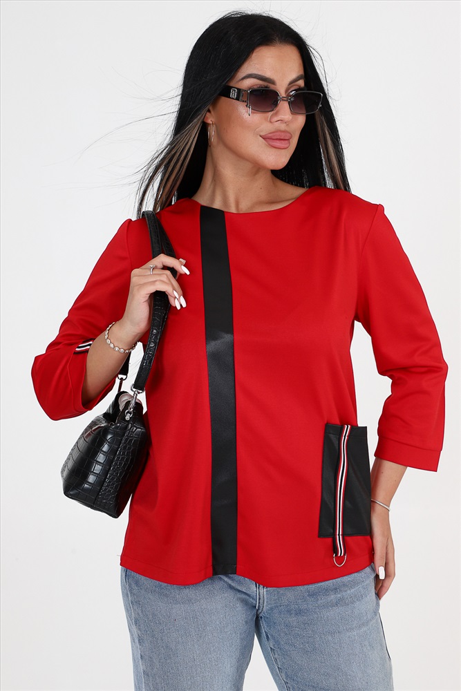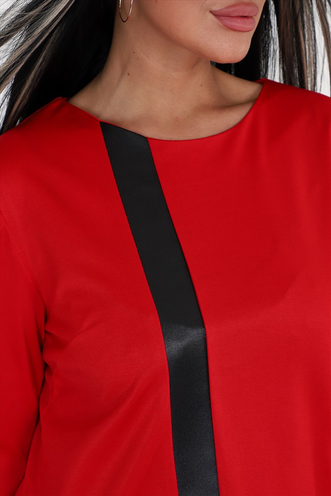 Полочка туники сделана из черной отделочной ткани, что придает ей особую изысканность. Вставка из черной отделочной ткани придает тунике дополнительный акцент и добавляет оригинальности.